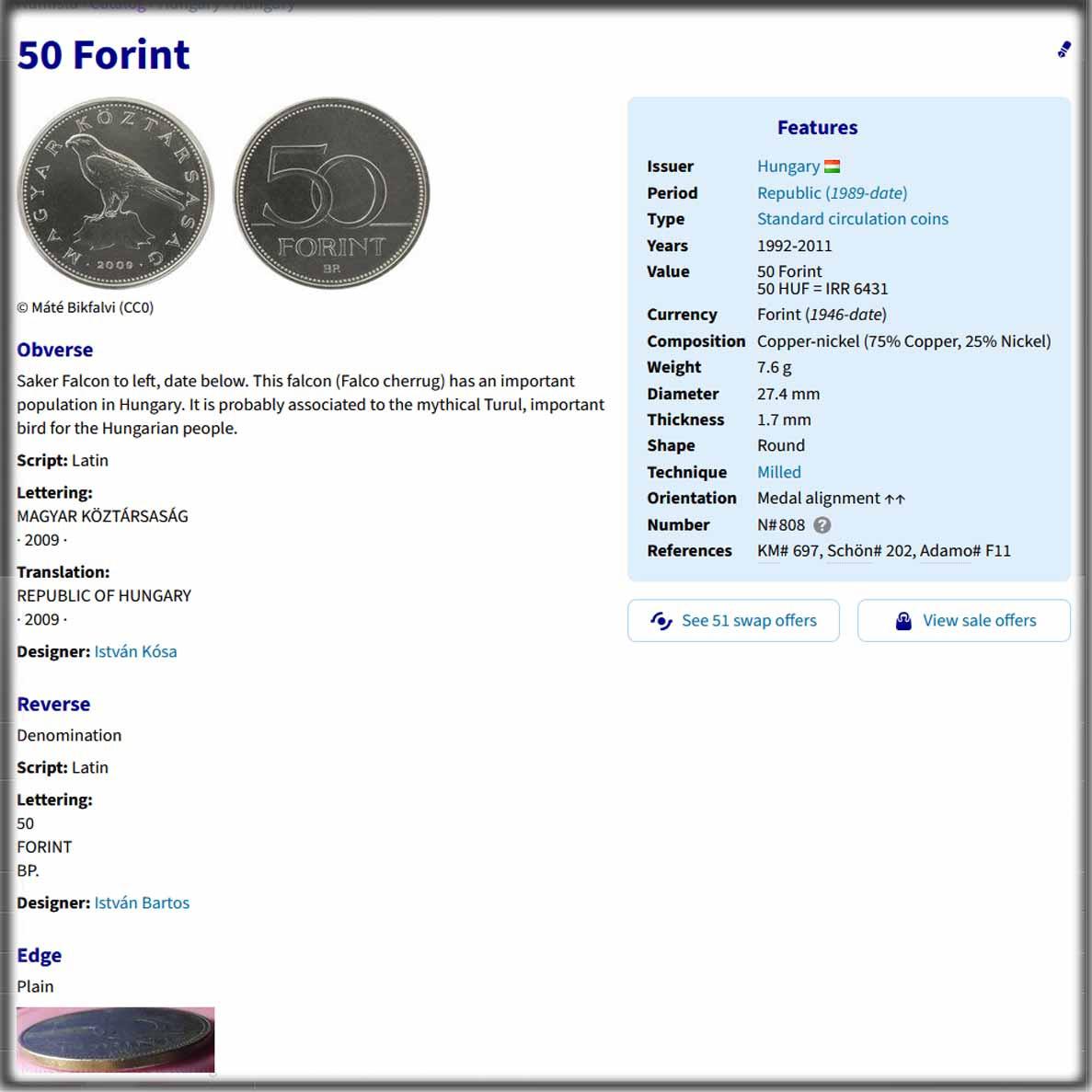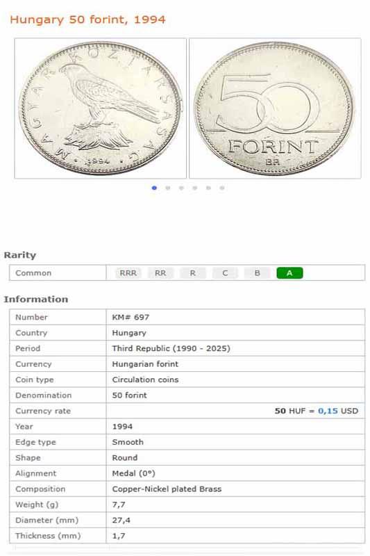سکه 50 فورینت مجارستان 1994