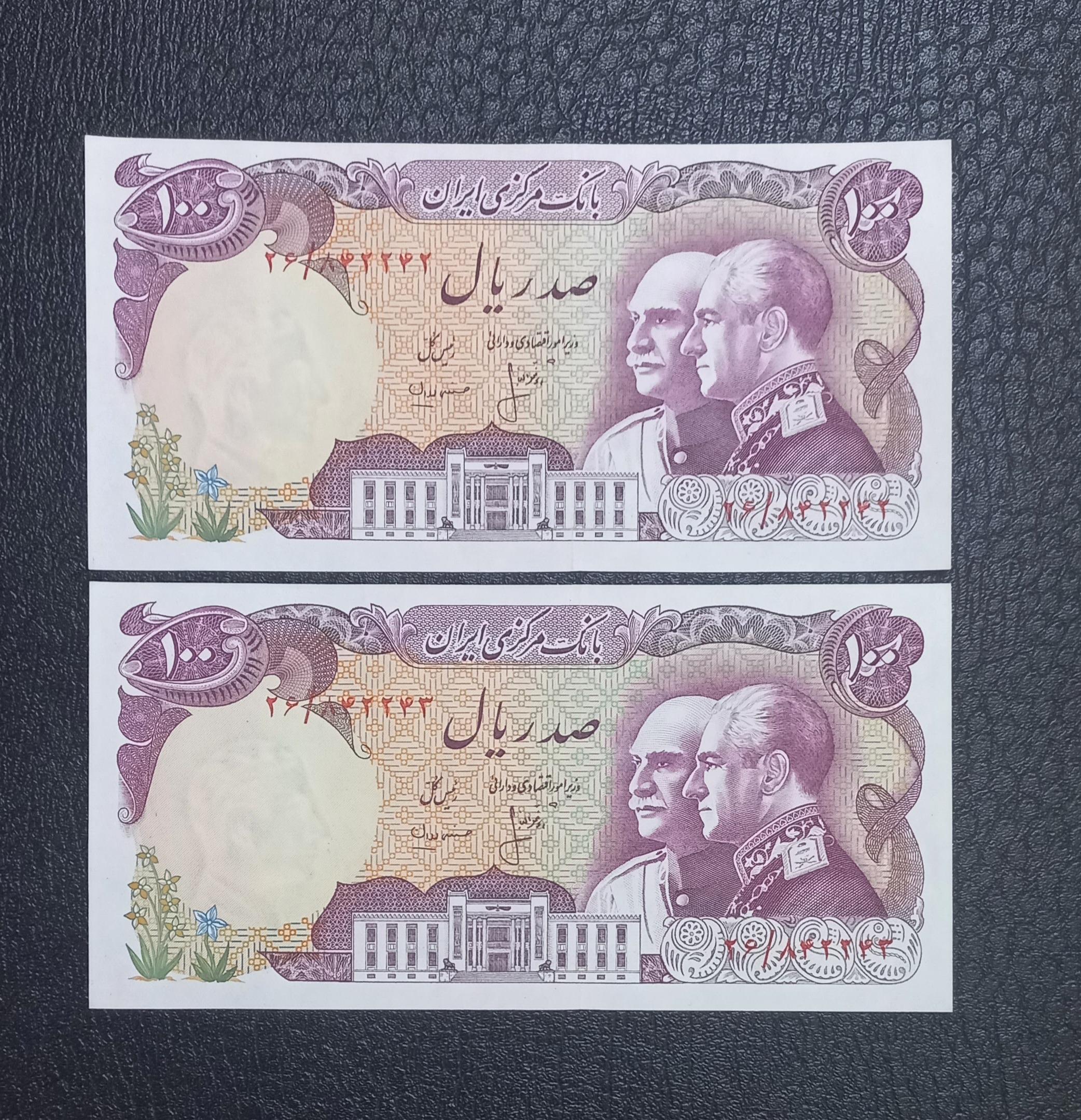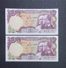 جفت سوپربانکی اسکناس زیبای100ریال پدروپسر شماره قشنگ