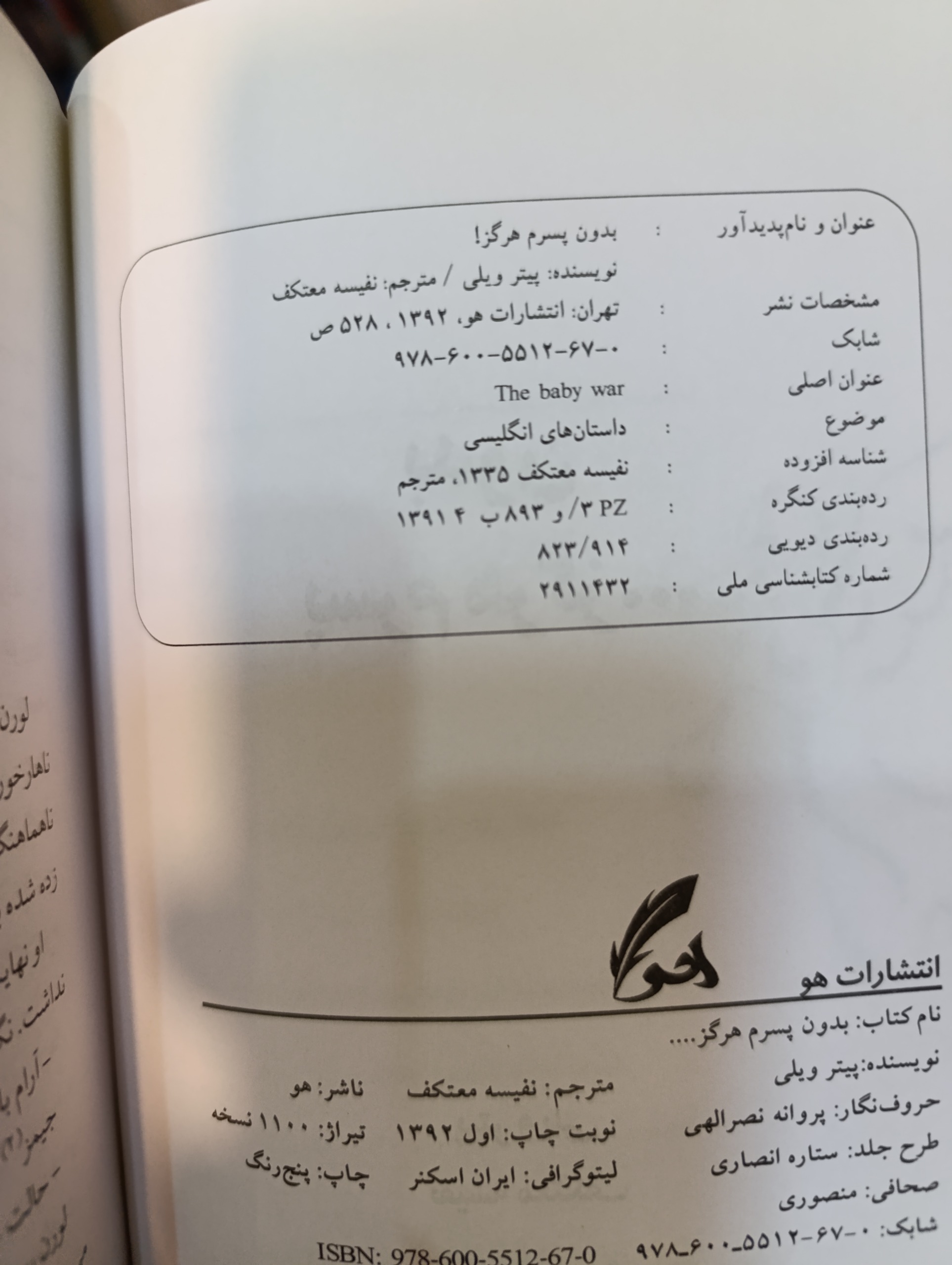 بدون پسرم هرگز از پیتر ویلی ترجمه نفیسه معتکف