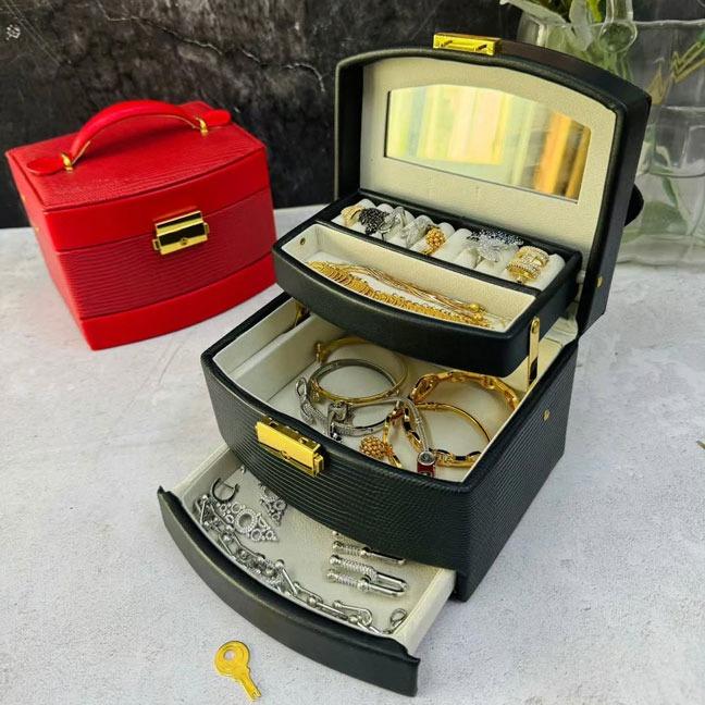 جعبه جواهرات و اکسسوری چرمی قفلدار | نظمدهنده شیک و کاربردی