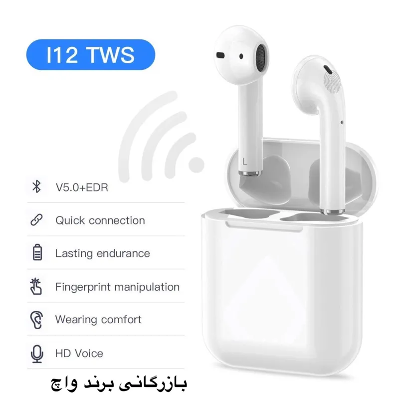 بازرگانی برند واچ اولین و تخصصی ترین مرکز پخش ساعت هوشمند طرح اپل واچ و سامسونگ واچ _ساعت سیم کارت خور_می بند نماینده رسمی فروش هندزفری و پاور بانک های شیائومی با گارانتی معتبر شرکتی معرفی محصول هندزفری بلوتوث TWS مدل i12 PLUS از مدل هایی است که دارای طراحی کاملا ارگونومیک و سازگار با گوش انسان می باشد و به راحتی داخل گوش قرار میگیرد هدفون ها در داخل یک باکس قرار میگیرند که در واقع از این باکس علاوه بر حفظ و نگهداری گوشیها، برای شارژ کردن آنها نیز استفاده میشود البته برای شارژ کردن آنها هم نیاز نیست هیچ اقدام اضافی انجام شود، به محض آنکه آنها را در باکس قرار دهید به صورت مغناطیسی و اتوماتیک خاموش شده و با زدن دکمه ی روی باکس فرآیند شارژ آغاز میشود صدای خروجی این مدل، از کیفیت و بیس بسیار مطلوبی برخوردار است جفت شدن یا به اصطلاح pair کردن هدفون ها و استفاده همزمان از هر دوگوشی برای پخش صدا، بسیار ساده است فقط کافی است تا گوشی ها را روشن کنید تا به صورت اتوماتیک به هم متصل شوند و برای اتصال به گوشی موبایل نیز تنها در تلفن همراه خود، گزینه i12 را انتخاب کنید و لذت ببرید هندزفری بلوتوث TWS به اضافه شارژ طولانی مدت بخاطر باتری های لیتیو یونی قابلیت اتصال به لپ تاپ، تلویزیون های هوشمند و دیگر محصولات دارای بلوتوث را نیز دارا میباشد مشخصات اقلام همراه هدفون_کابل شارژ _دفترچه راهنما منبع تغذیه هدفون_باتری منبع تغذیه فرستنده_باتری محدوده عملکرد_10 متر عمر باتری_300mAh نوع گوشی_دو گوشی عمر باتری هدفون در حالت مکالمه 3 ساعت ساعت عمر باتری هدفون در حالت پخش موسیقی 3 ساعت ساعت عمر باتری هدفون در حالت استندبای 6 ساعت عمر باتری محفظه شارژ 6 ساعت ساعت زمان موردنیاز برای شارژ هدفون 35 دقیقه ساعت زمان مورد نیاز برای شارژ محفظه 35 دقیقه ساعت وزن 36 گرم نسخه بلوتوث 50 نوع اتصال بیسیم مناسب برای مکالمه گیمینگ ورزش کاربری عمومی