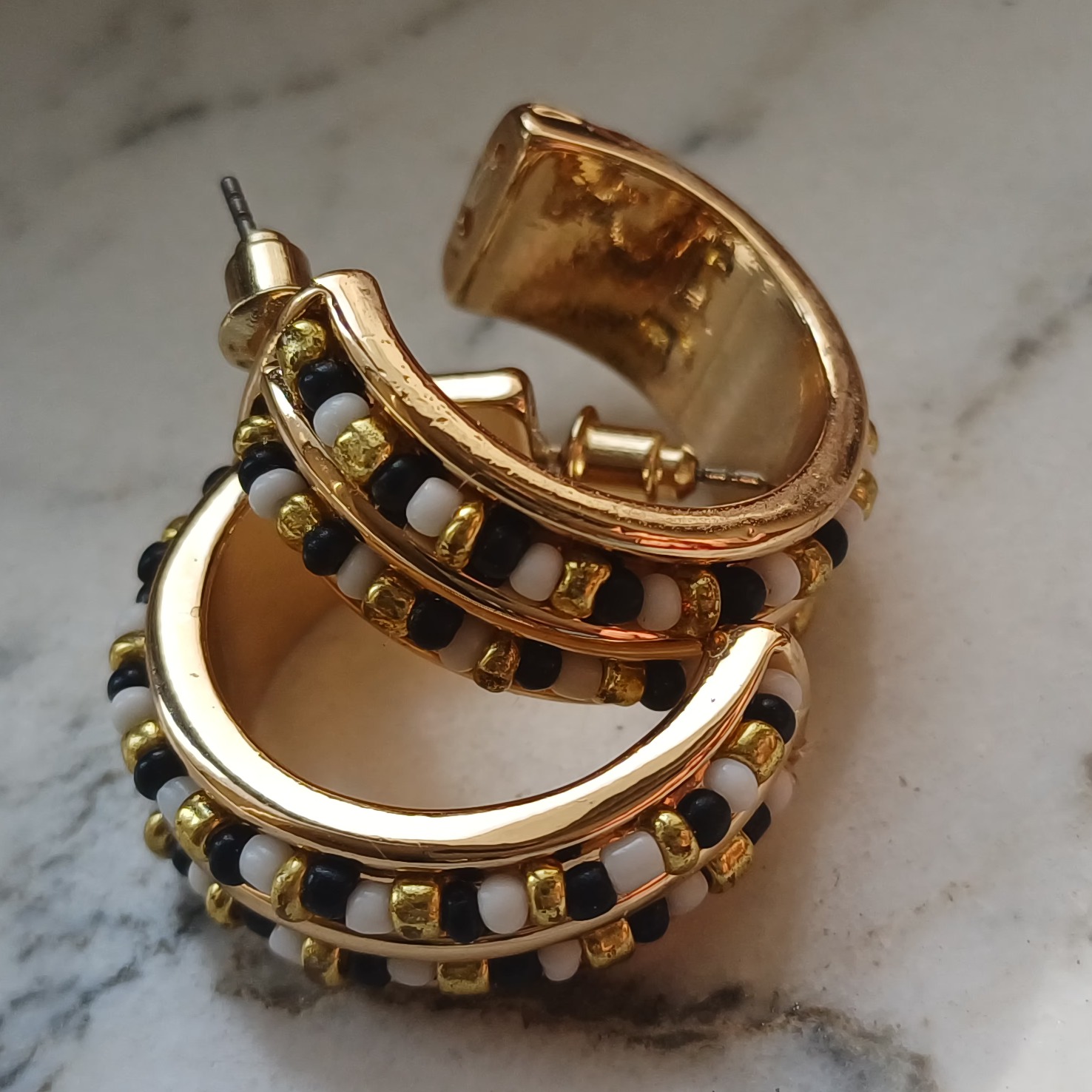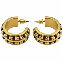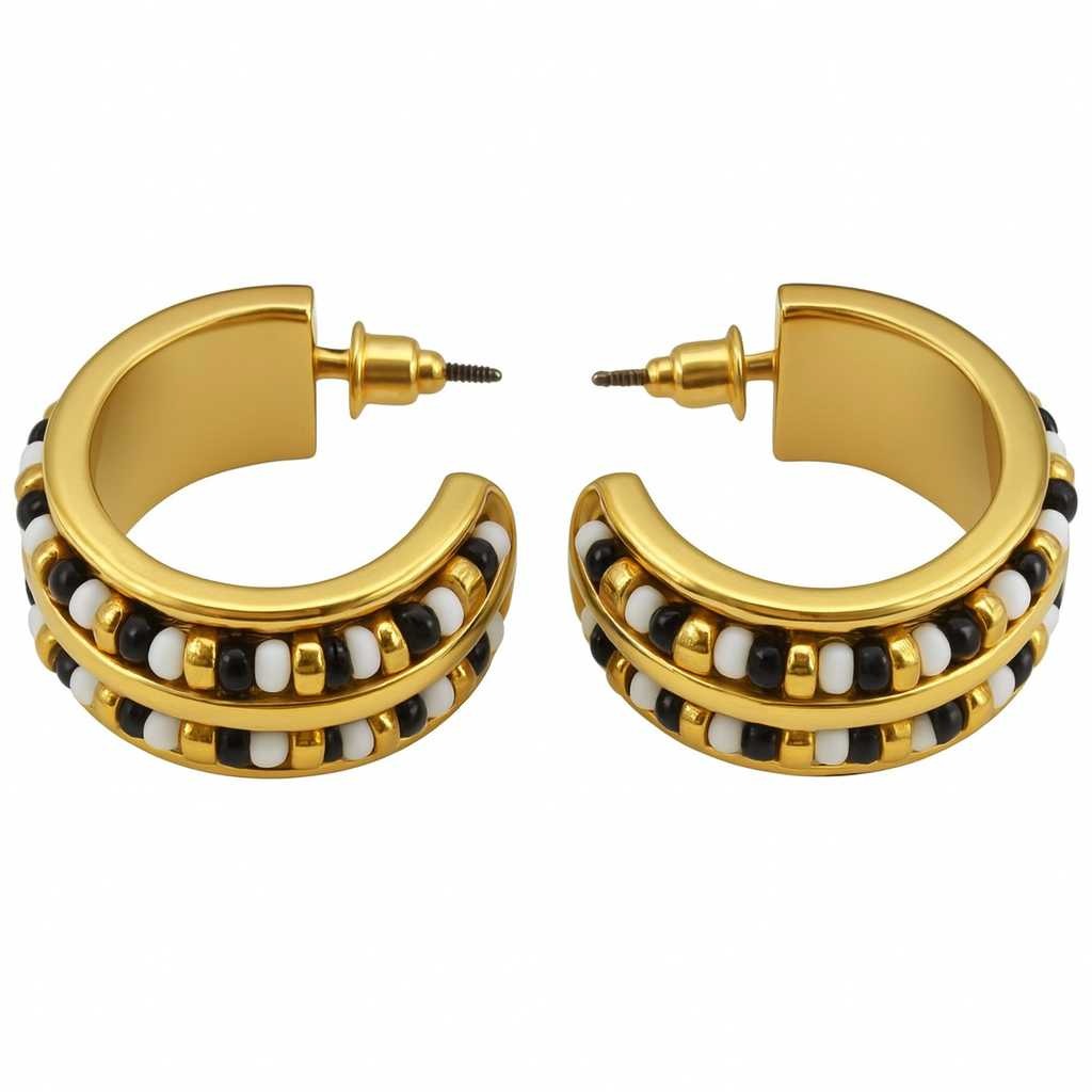 دارای مروارید هایی به رنگ طلایی، مشکی و سفید اتصال میخی