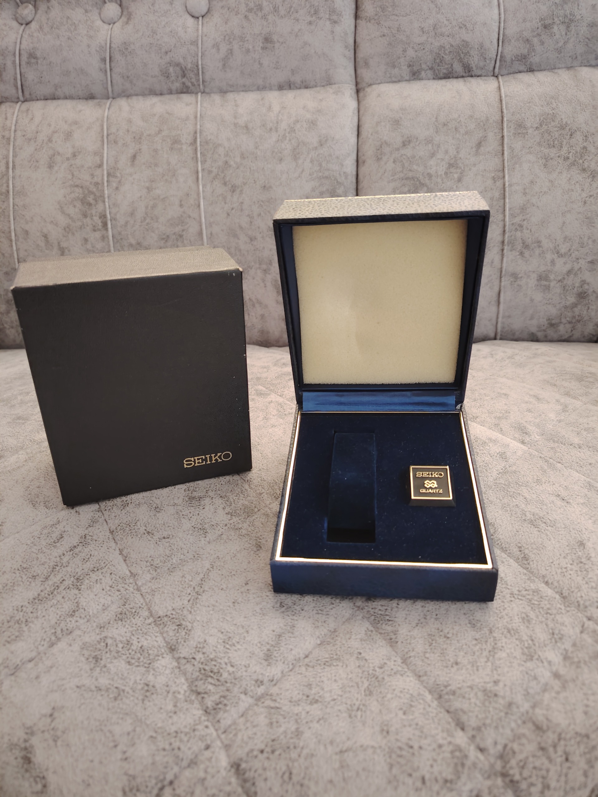 جعبه اصلی و قدیمی SEIKO QUARTZ مخصوص ساعتهای کوارتز سیکو، مناسب کلکسیونرها و افرادی که به دنبال تکمیل ست اورجینال ساعت خود هستند. فقط جعبه مقوایی که جعبه اصلی داخلش قرار میگیره در سایت ای بی انگلیس 25پونده