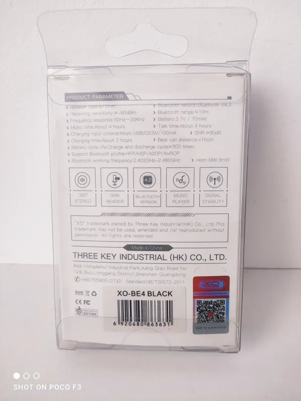 هنزفری بلوتوث XO-BE4 تک گوشی مشکی