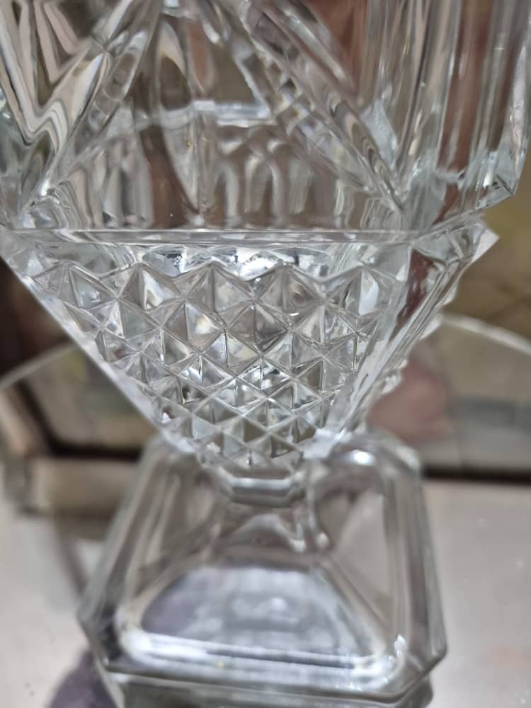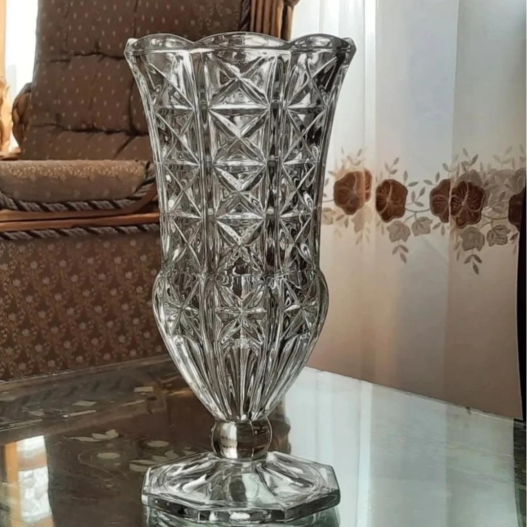 گلدان کریستال ایتالیایی قدیمی بسیار زیبا و خاص با مارک حک شده و ارتفاع 27 سانت