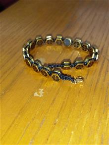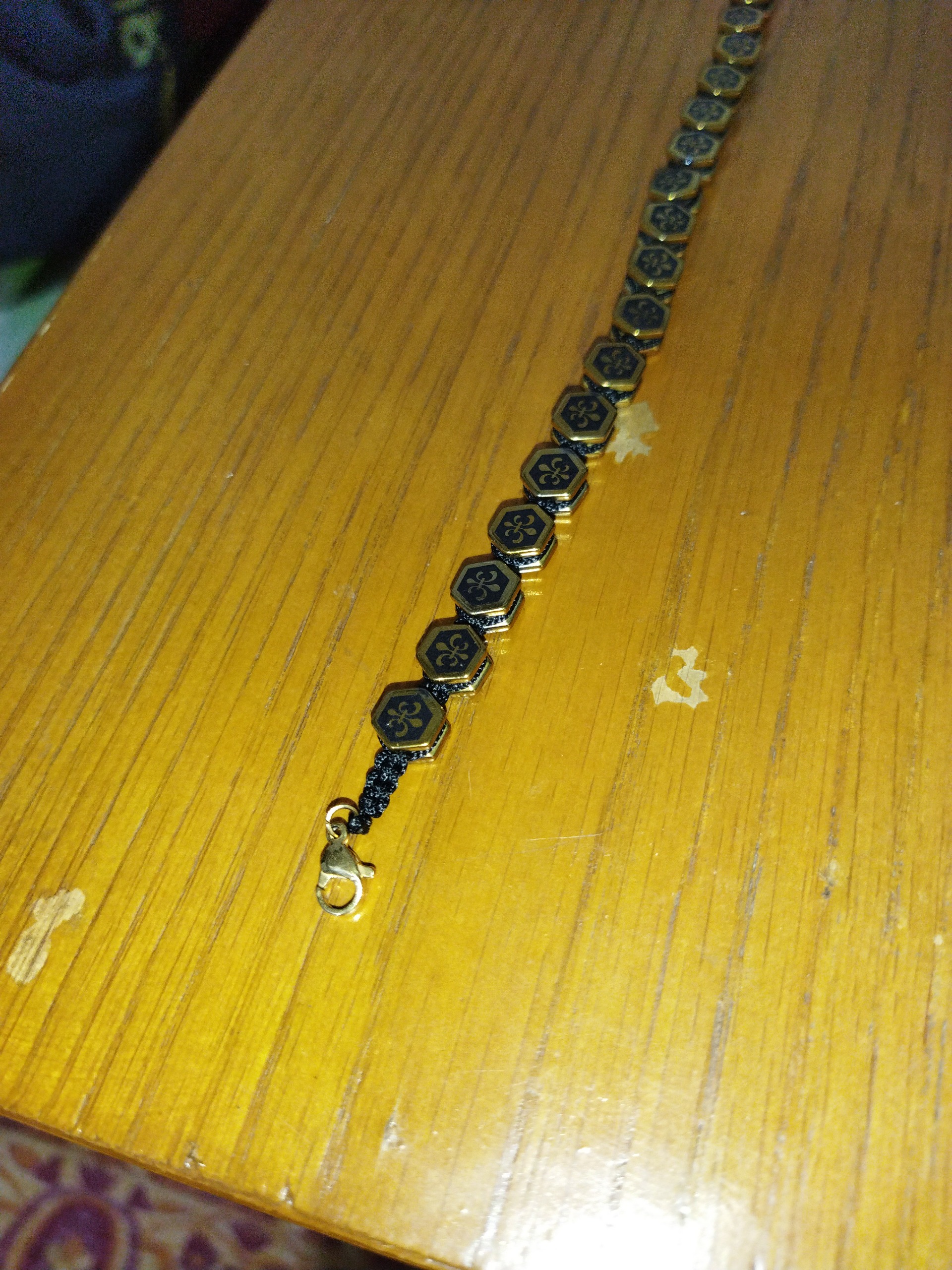 دستبند سنگ حدید طبیعی با چاپ لیزری طلایی به هیچ عنوان رنگ سنگ از بین نمیره اندازه 20سانت.تک و خاص به هیچ عنوان جای دیگه این مدل سنگ حدید پیدا نمیکنی