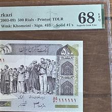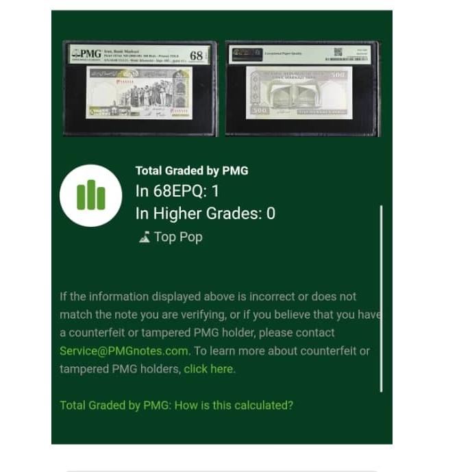 تک اسکناس 50 تومانی گرید 68 TOP POP بالاترین گرید وتنها اسکناس 500 ریالی با این گرید مطابق تصویر شرکتPMG