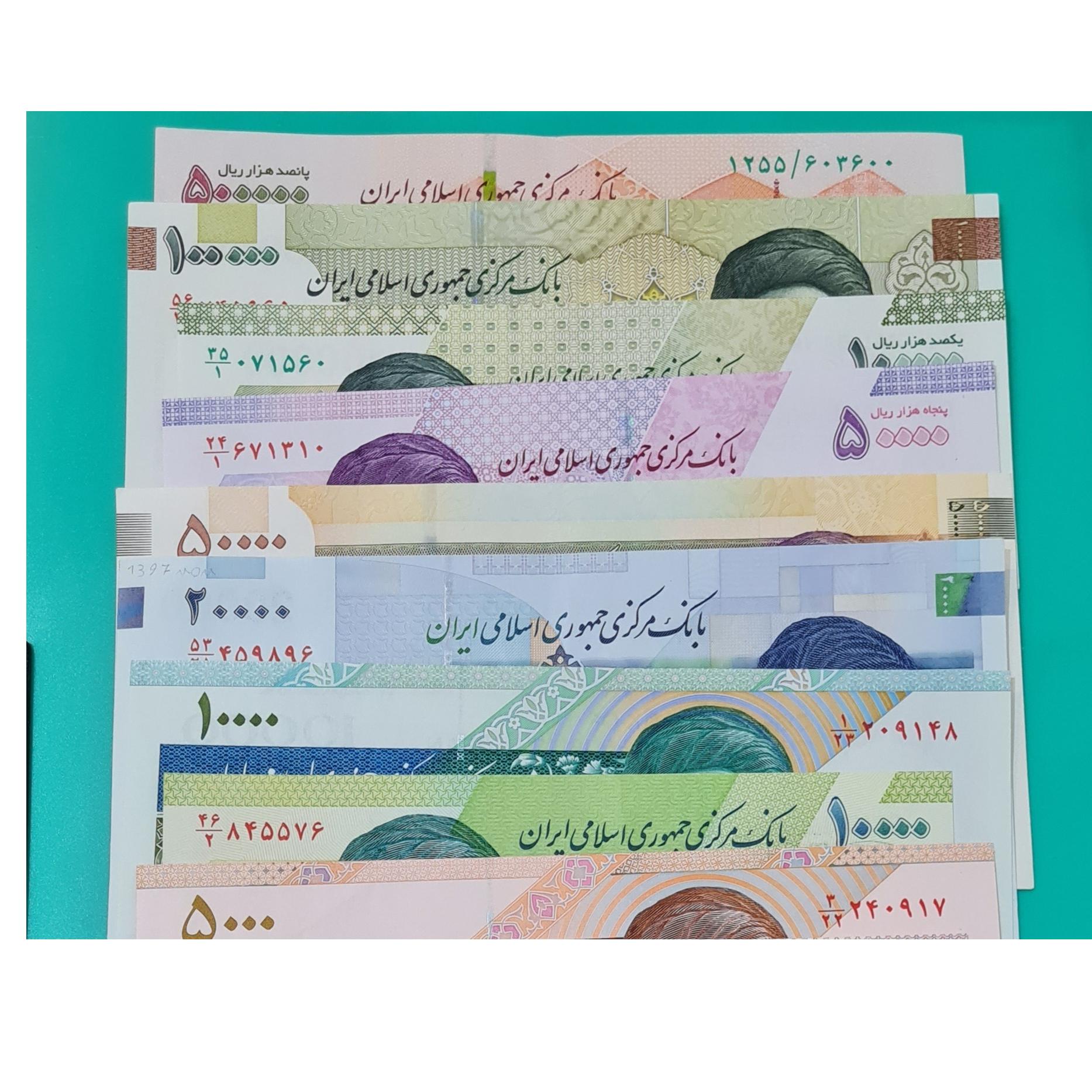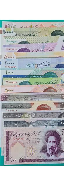 یک سری َ14 تک برگ نمونه از اسکناس های جمهوری از صد ریالی تا تراور 50هزاری تومانی طبق عکس