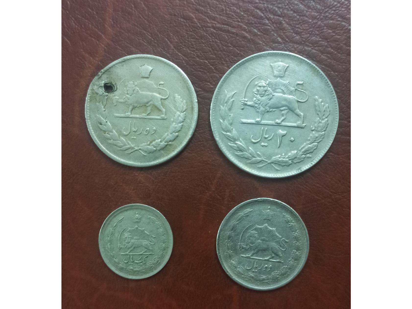 4 سکه پهلوی دوم ( 20 ، 10 ، 2 ، 1 ریالی)