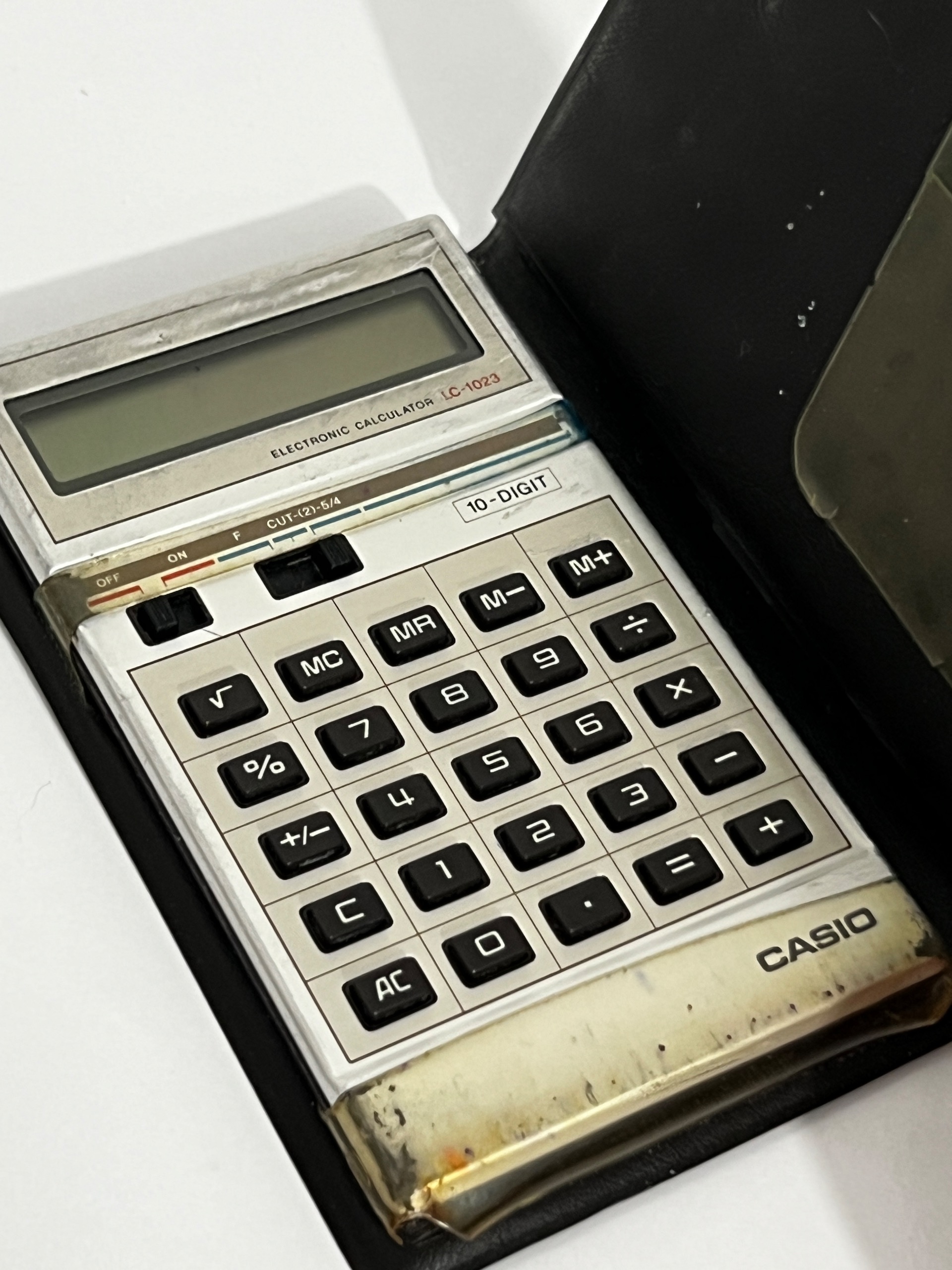 Casio LC-1023 یک ماشین حساب جیبی پایه از دهه 1980 با نمایشگر 10 رقم و توابع ساده است که برای کارهای روزمره و محاسبات پایه مناسب بوده و طراحی جمع وجور و استفاده آسان داشته است