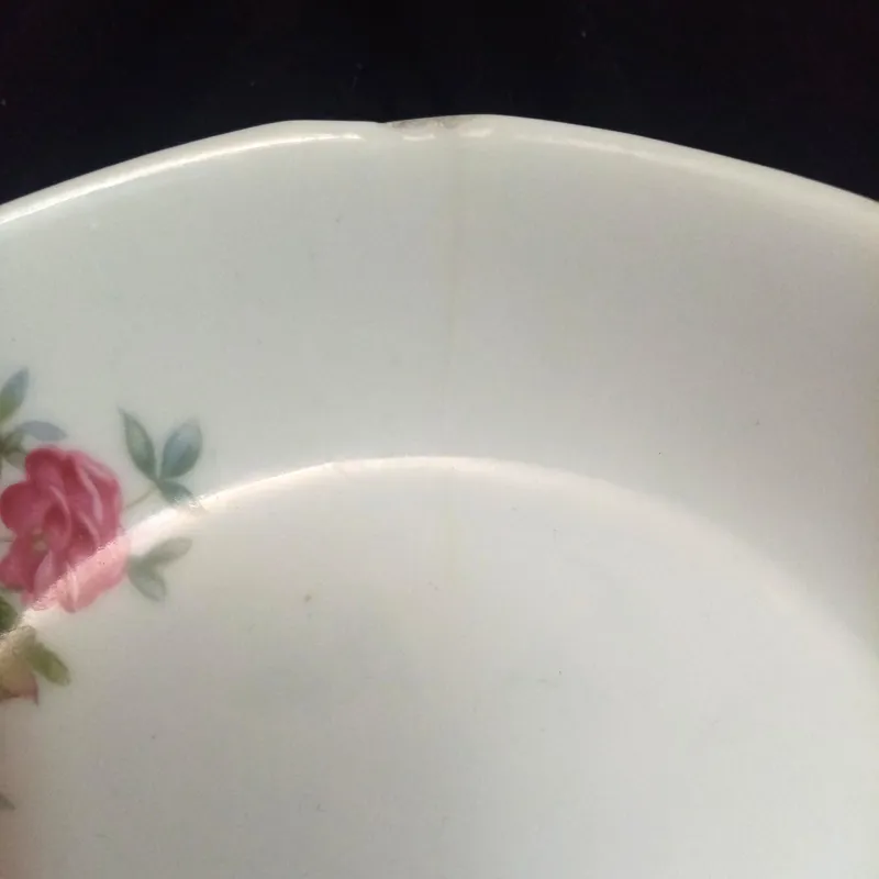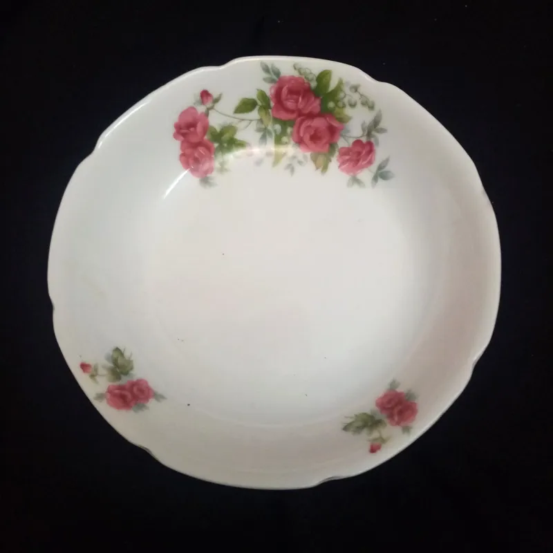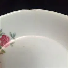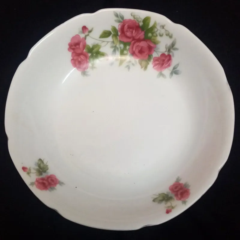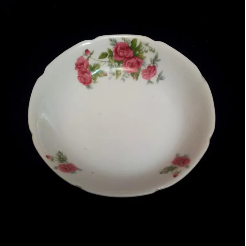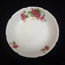 کمپوت خوری گلسرخی بسیار زیبای ژاپنی سفارش ورشوچیان، قطر 14 سانت تمیزودرحدنو، درعکس آخر یک ترک مویی کوچک مشاهده میشود که بسختی قابل رویت است ودرقیمت لحاظ شده، بااینحال قابل استفاده میباشد.مناسب کسری.