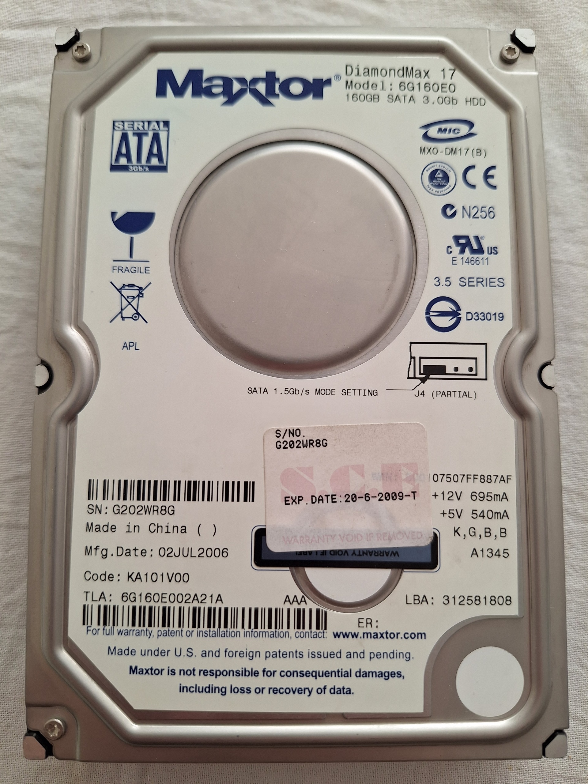 هارد 160 گیگ PC اینترنال مکستور ساتا 99 درصد