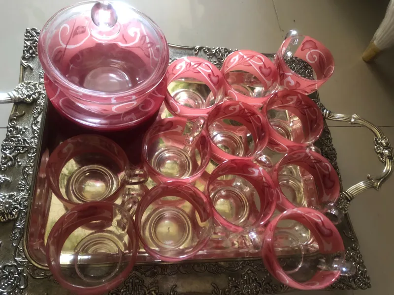 قیمت دودست 6نفرهشامل 12عدد فنجان و12عدد نعلبکی بعلاوه یک عدد قندان دردار2تومن .بدون سینی وبدون کارتن