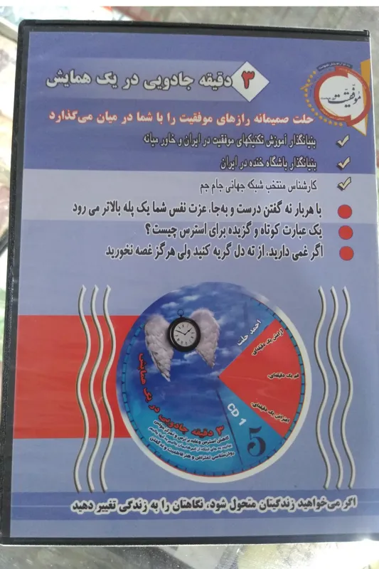 3عدد سی دی آموزشی موفقیت دکتر حلت من3عدد میفرستم توجه یکی از سی دی ها ترک دارد3 دقیقه یی و سی دی ثروت و توانگری 1عدد هست در خرید دقت کنید300 است چون ترک دارد قیمت را 200 زدم1سی دی ترک دار رایگان است نمیدونم صوتی است یا تصویری