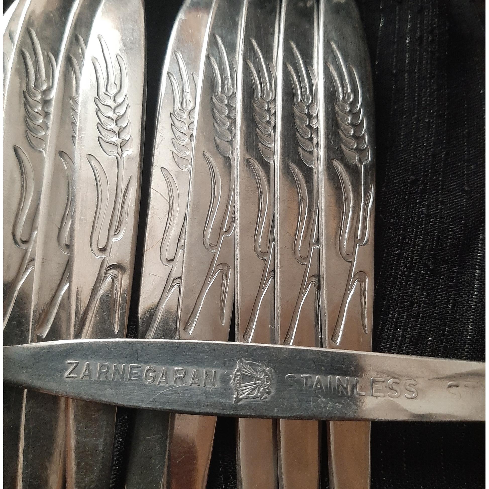 یکدست چنگال و 5 قاشق غذاخوری گل گندمی دست دوم عمر 60 خط و خش کمی دیده میشود