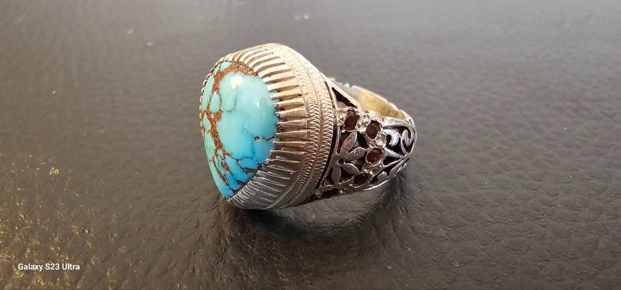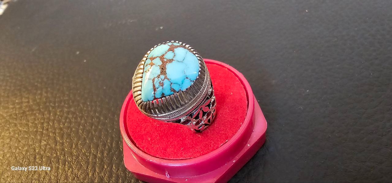 انگشتر فیروزه نیشابور اصل رکاب دستساز استاد مغان