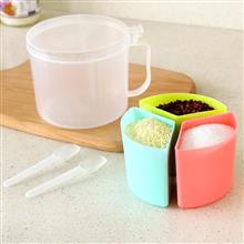 جا ادویه سه تایی دسته دار ، محصولی با طراحی جدید و فانتزی می باشد که تولید شده از جنس پلاستیک مقاوم و بسیار با کیفیت است . این جا ادویه ای فانتزی ، طرح ظاهری مشابه به یک استوانه را دارد و شامل سه محفظه مجزا برای نگهداری ادویه به همراه سه قاشق می باشد که در یک محفظه اصلی مجهز به درب آسان بازشو قرار دارند . رنگ این محصول ترکیبی می باشد که زیبایی خاصی را به آن می دهد . استفاده از این جای ادویه به دلیل داشتن دستگیره ، در هنگام آشپزی کار بسیار ساده ای است.
