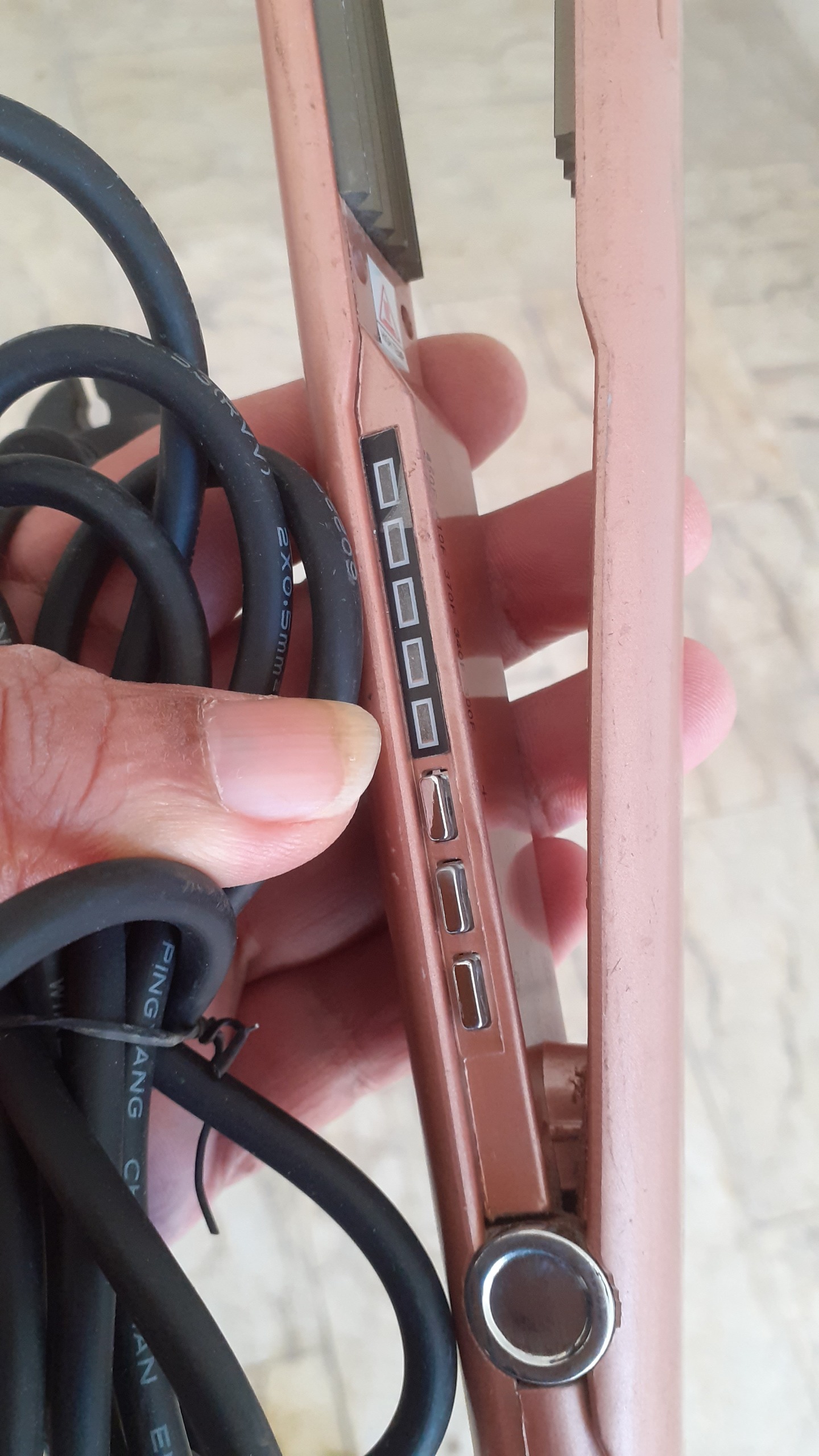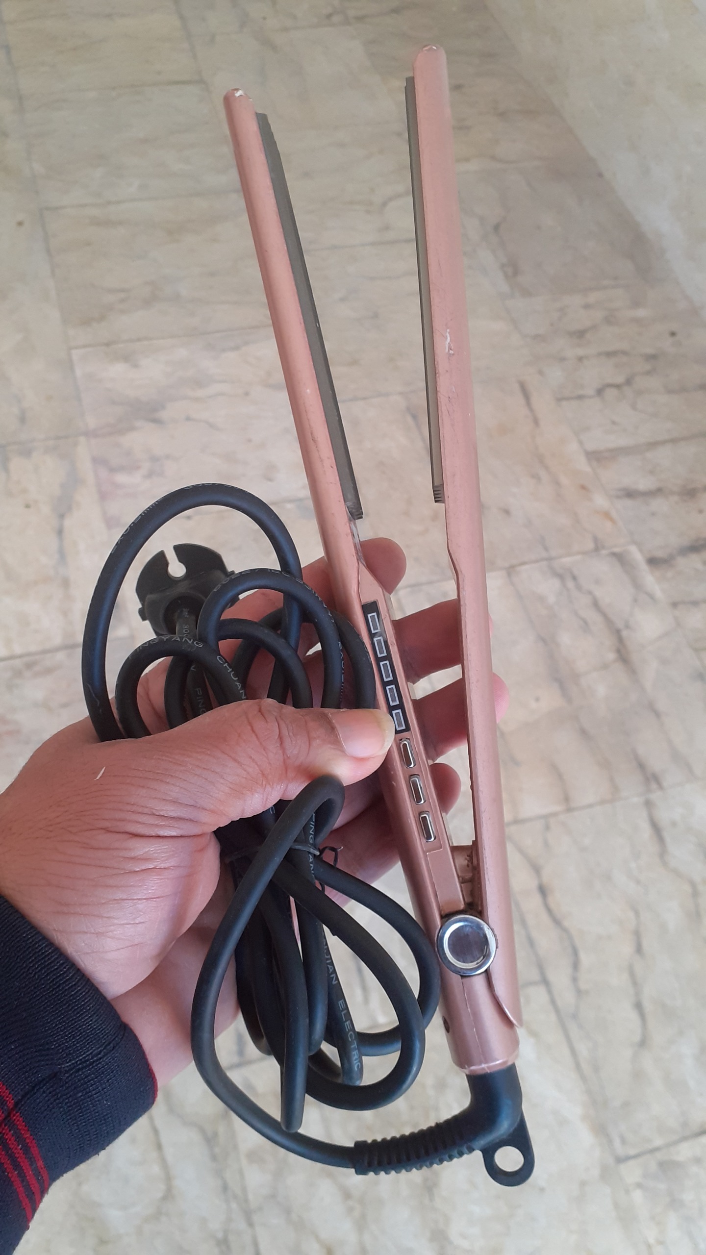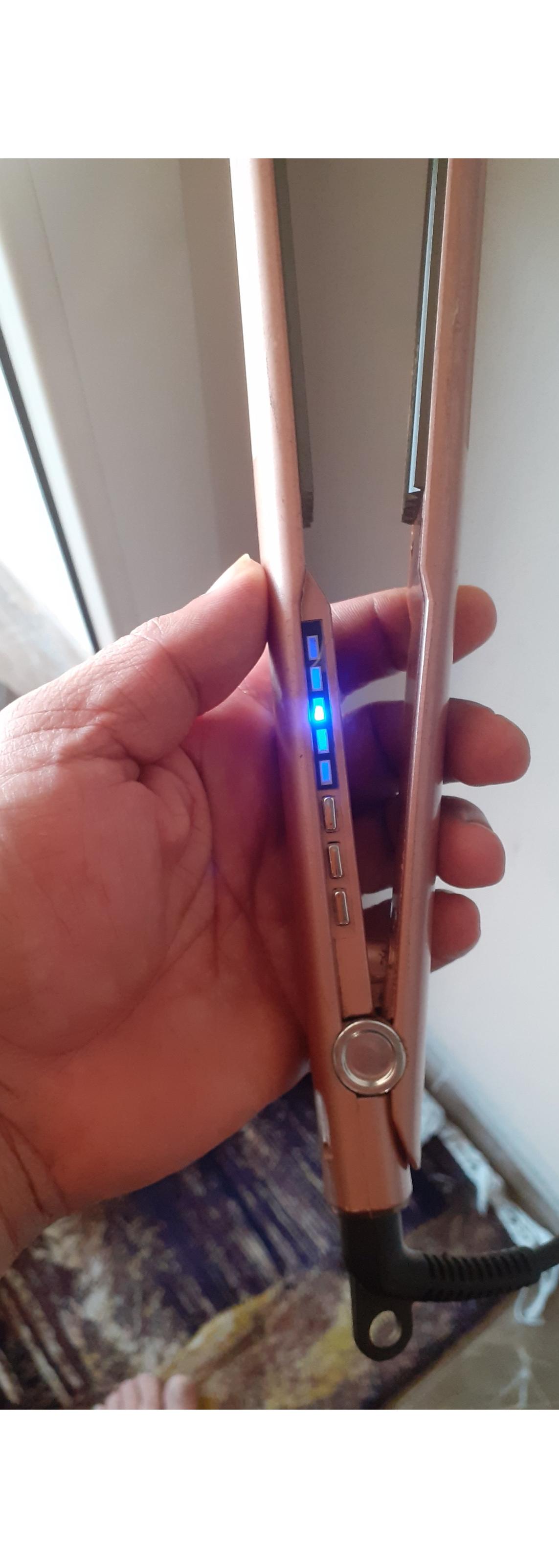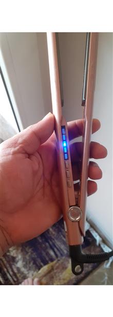 اتو مو تقریبا بزرگ با تنطیم حرارت .برابر با تصاویر که از خود کالاست چون کارتون نداردو از کالای ویترین بوده بدلیل نور آفتاب کمی رنگ و رو رفته و برای همین دست دوم زدم وگرنه اصلا استفاده نشده و نو هست و مارک معتبر قیمت هم در کمترین حد .تنها 3 عدد موجود با گرمادهی عالی برای موهای بلند و دارای کلید تنظیم گرما
