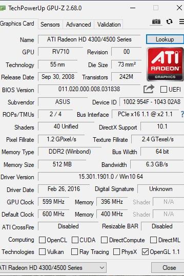 گرافیک 512 مگASUS AMD 4350 HDMI