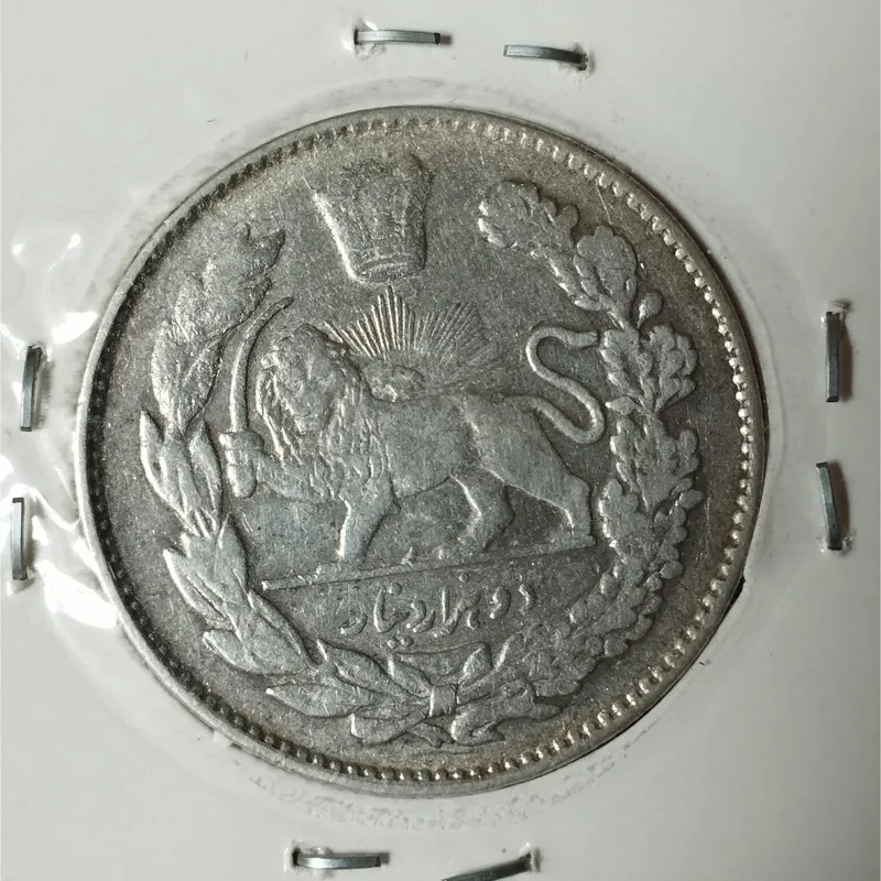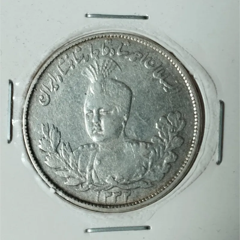 سکه نقره دو هزاری احمد شاه سال 1332 قمری. کیفیت مطابق تصویر . سکه ارور ضرب مکرر دارد.