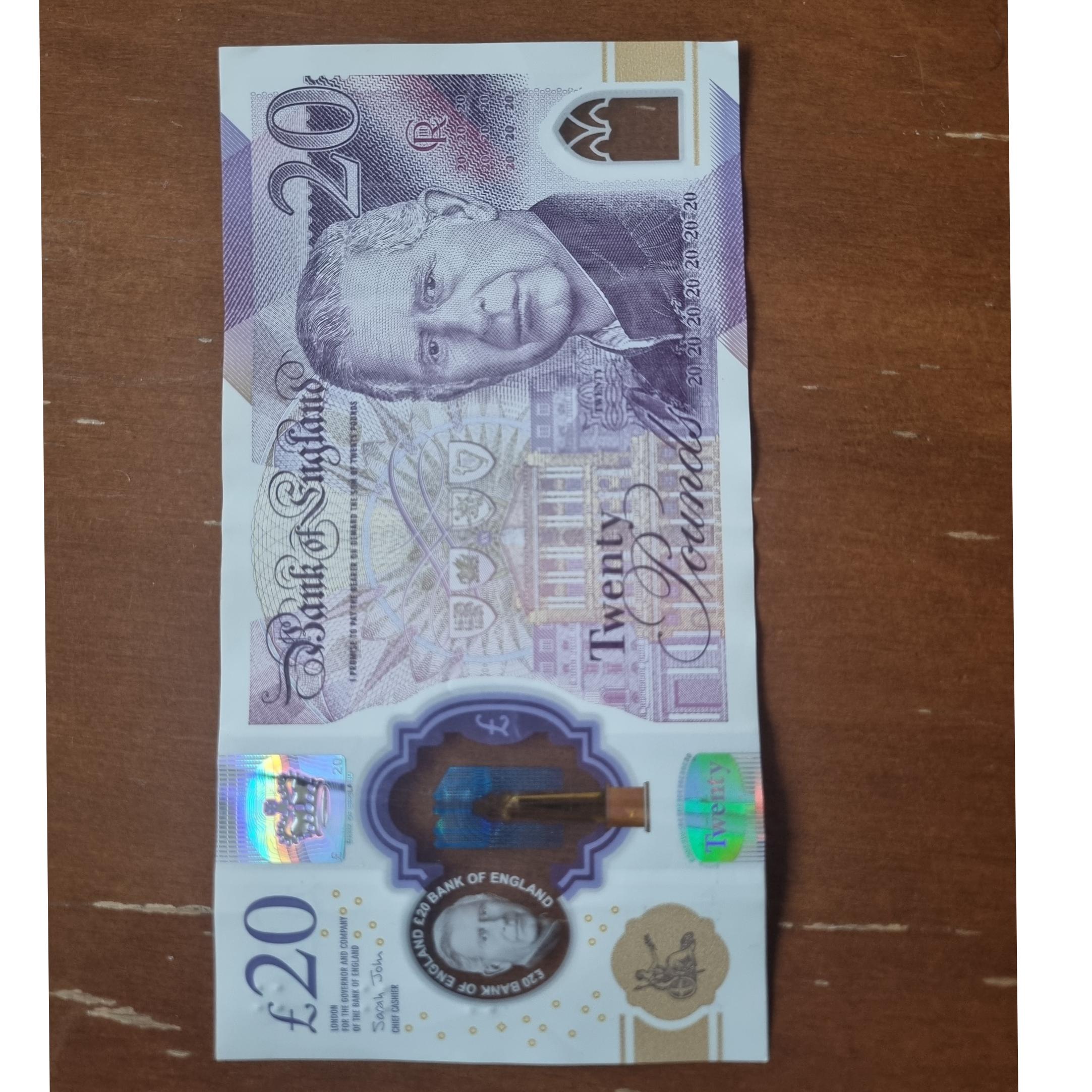 20 پوندی پلیمری انگلستان با تصویر چارلز کمیاب،