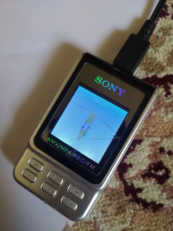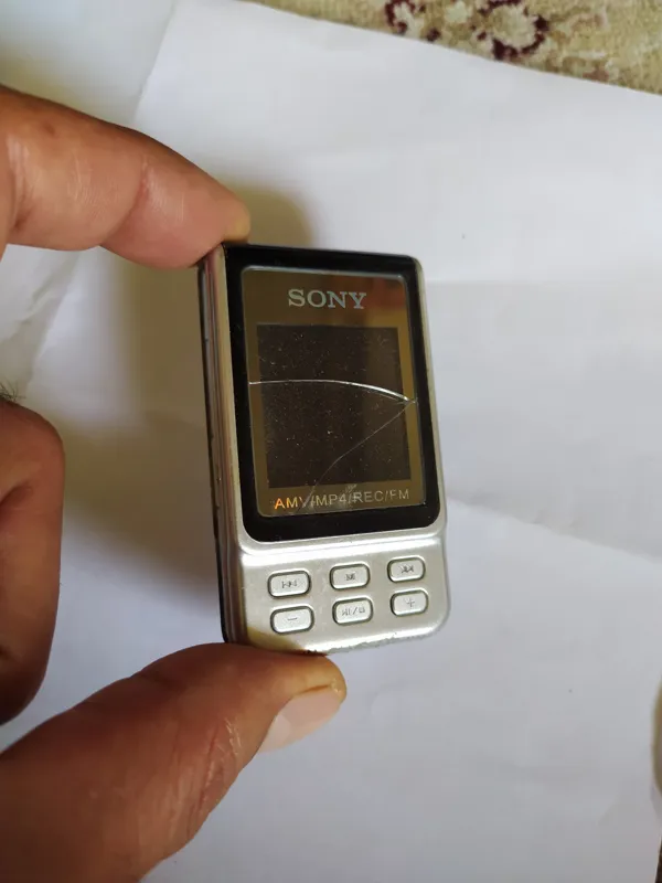 موزیک پلیر فسقلی مارک سونی. باتریش شارژ نمیشود. قاب شیشهای ترک دارد. صدای بلندگو کم ولی با هدفون عالی. کمیاب هست. کارکرد سالم و صدا با هدفون شفاف و عالی. بدون متعلقات