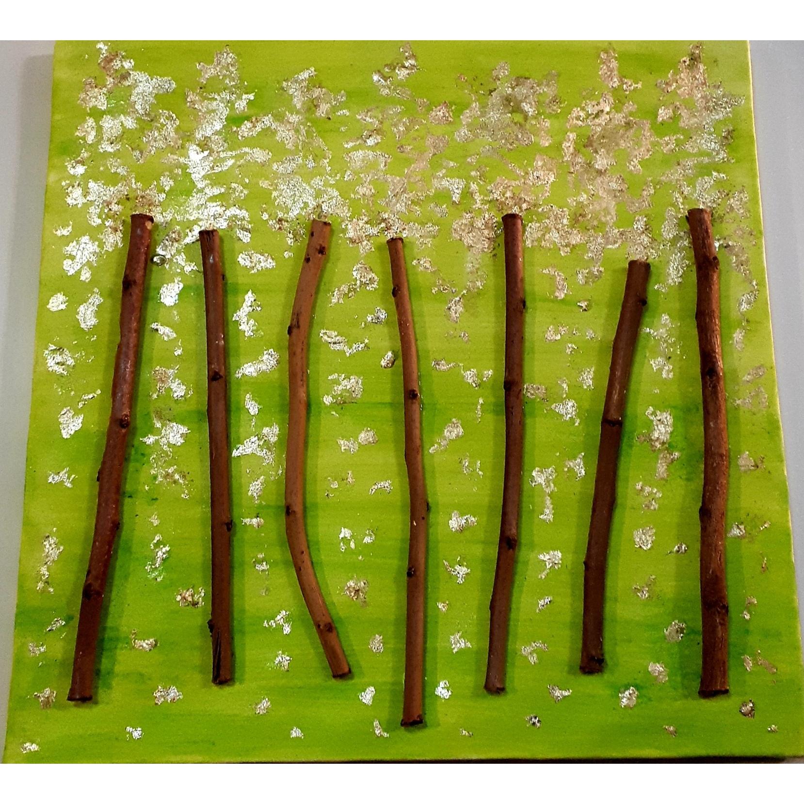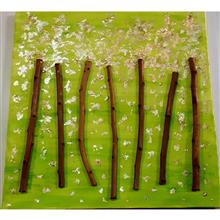تابلوی دکوراتیو با شاخه های درخت بر روی زمینه آکریلیک و ورق طلا