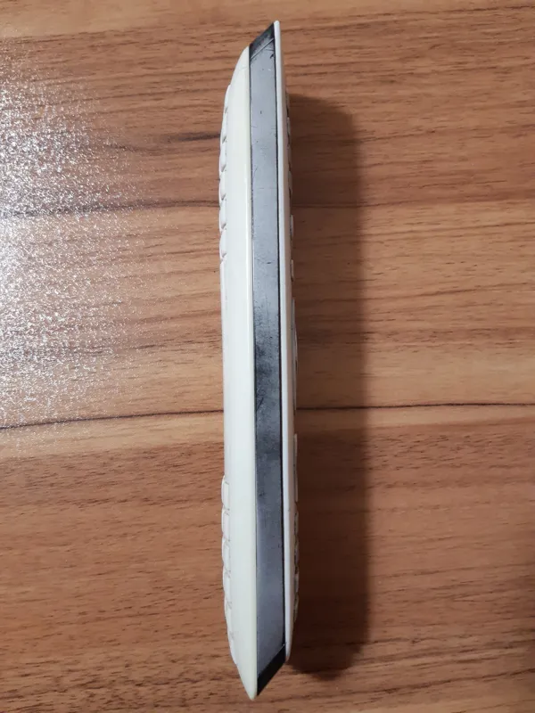 کنترل کیبوردی فلیپس بسیار کمیاب ازنظر ظاهری سالم فقط وسیله مورد نیاز جهت تست وجود نداشت ولی بسیار باکیفیت وکمیاب هست درب پشت باتری فقط یه خورده شل هست ولی کاملا سالم.