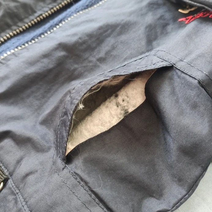 فقط یکی از جیب ها نیاز به ترمیم داره پارچه داخلی محفظه جیب نیاز به تعمیر داره