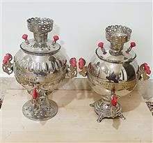 یک جفت سماور روسی مرغ و خروس برقی قدیمی