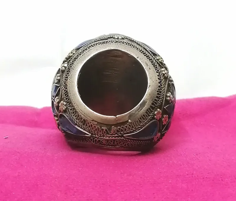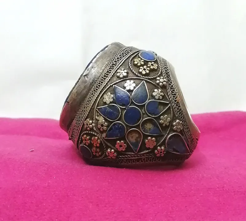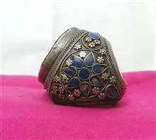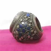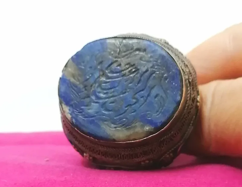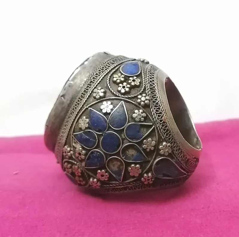 انگشتر نقره قدیمی با نگین لاجورد خطی کهنه کار فوق کلکسیونی کمیاب و خاص به وزن 60 گرم