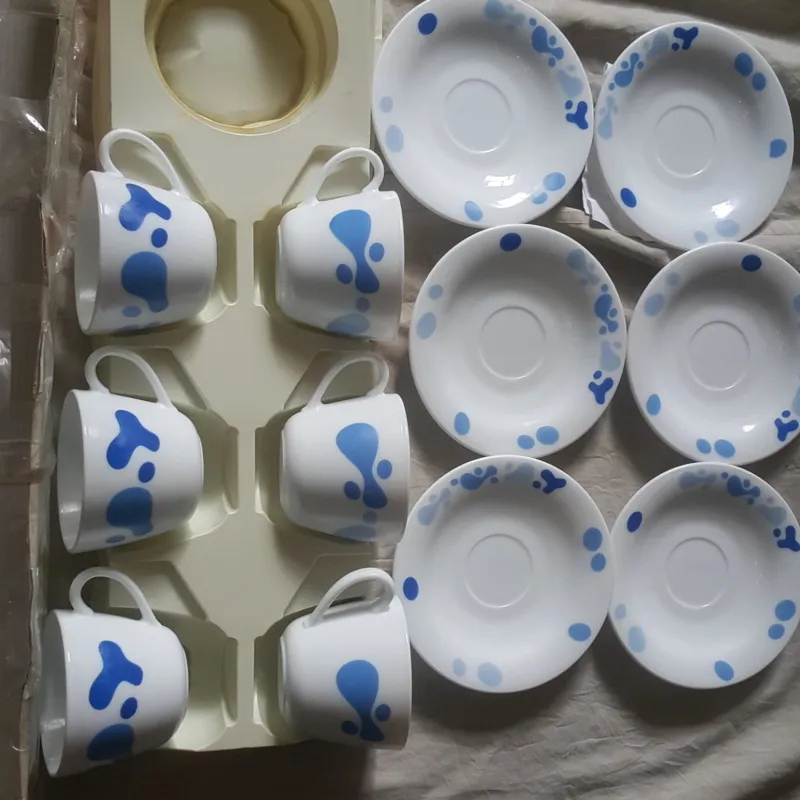 یک دسته کامل و استفاده نشده فنجان و نعلبکی ارکوپال سایز بزرگ ایتالیایی زیبا و قشنگ دارای قوطی فابریک خودش مناسب چای و قهوه