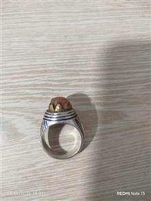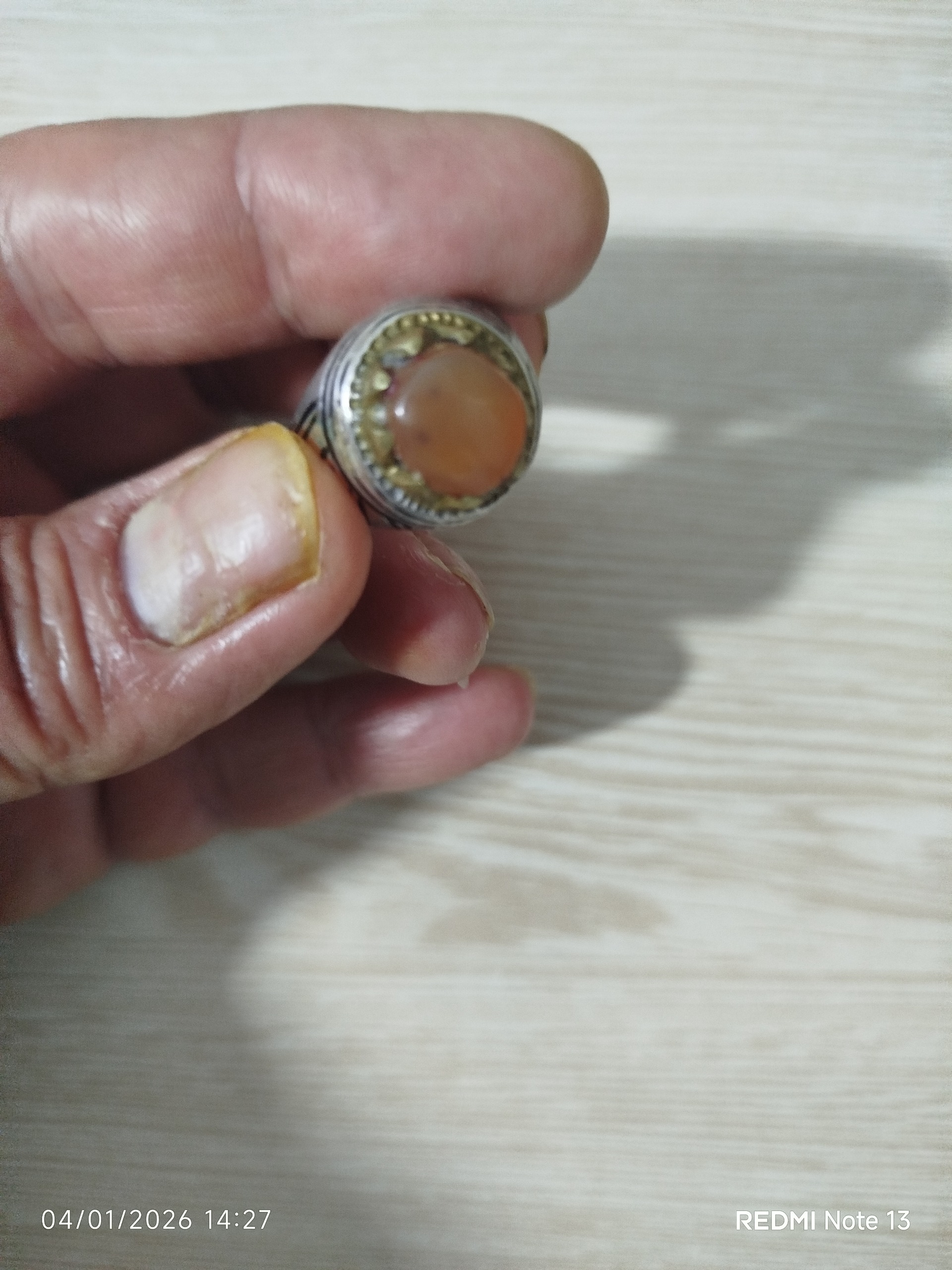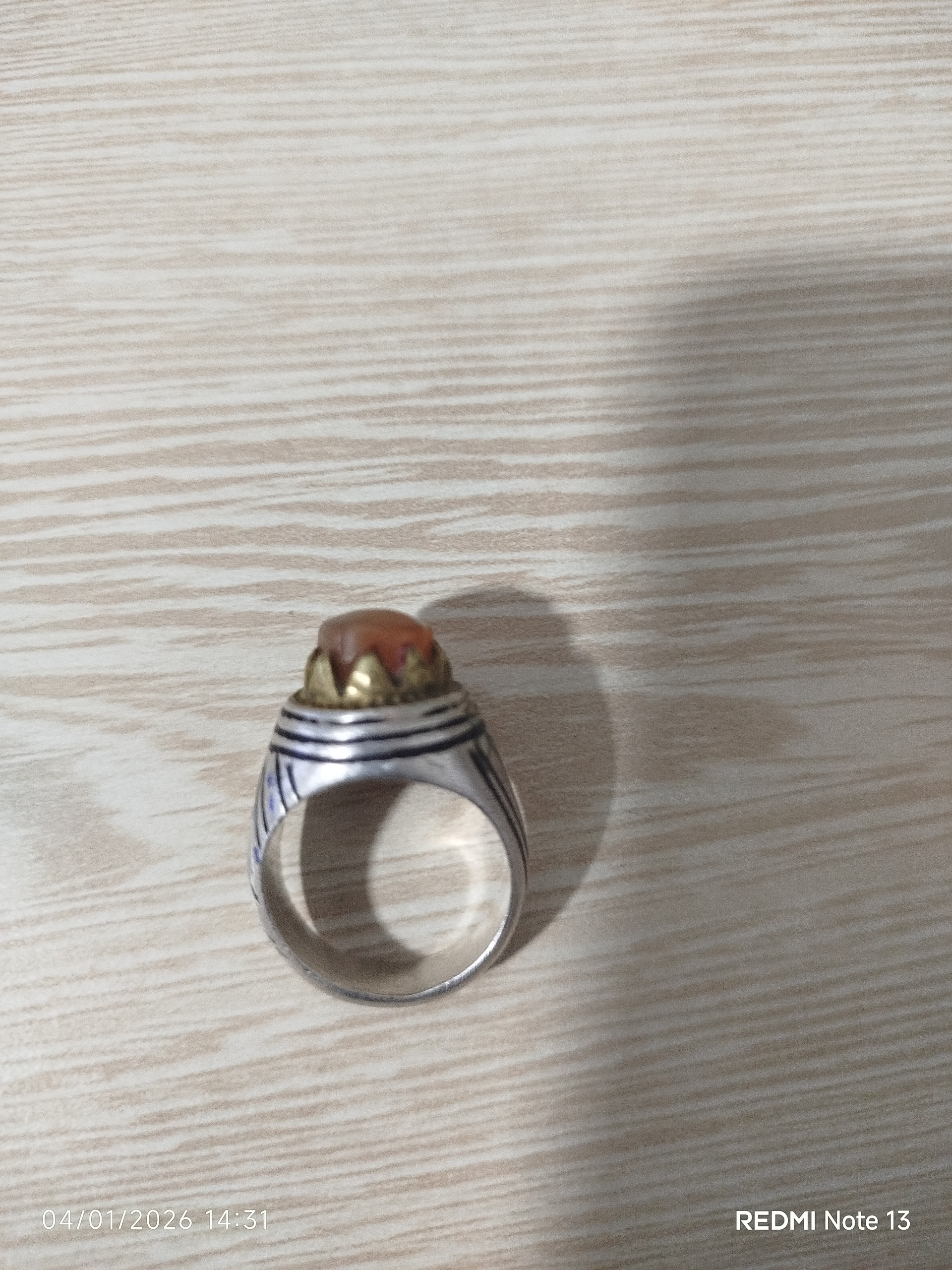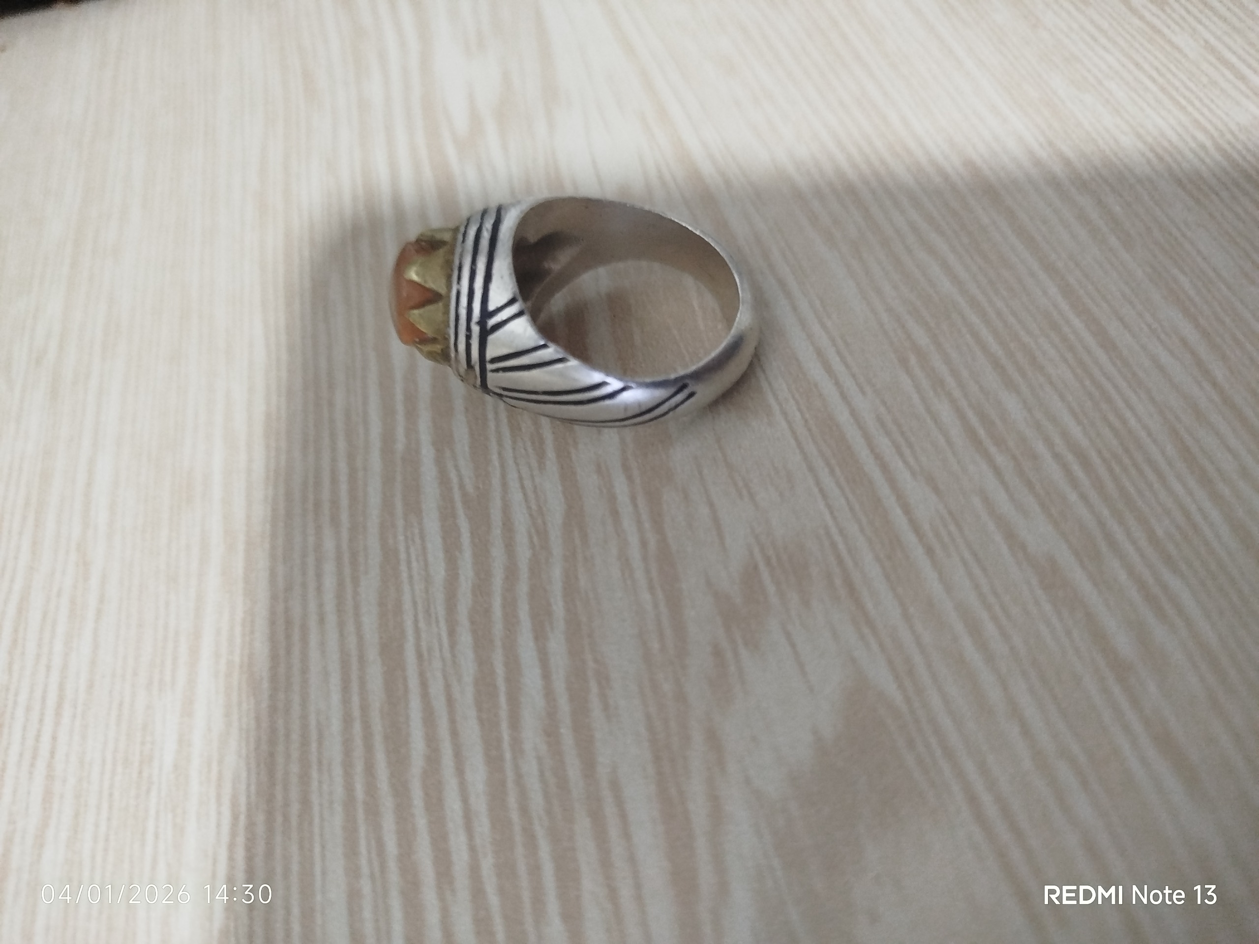 انگشتر نقره قدیمی نگین یمنی رنگ پرتقالی دارای 16/5گرم نقره عیار 925رکاب زیبا وجوندار