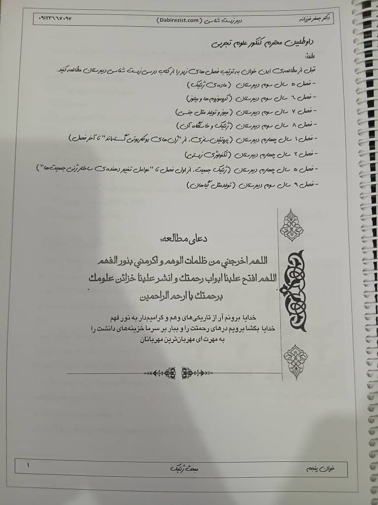 زیست بی نظیر دکتر فرزانه خوان پنجم درس وتست جواب تشریحی تست ها خوان هفتم