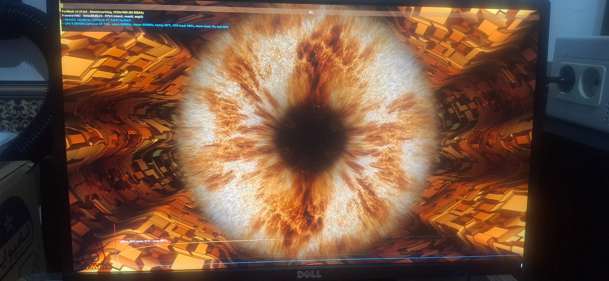 سلام دوستان ایسامی کارت گرافیک gt7304g کاملا سالم و واقعا در حد نو اصلا روی کیس نرفته کوچکترین گرد و قبار و خط و خشی نداره خیلی تمیز تر از این چیزیه که توی عکس نشون میده کیفیت دوربین من خوب نیست فن کاملا بیصدا . توی فورمارک با روزولیشن 1920 در 1080 که واقعا این تست برای این کارت فوقلعاده قویه حرارت مینیموم 31 و ماکسیموم 68 بود که این دما برای این کارت با این تست قوی فوقلعادس و به عکس فورمارک توجه کنید تست واقعیه از تایم تست مشخصه