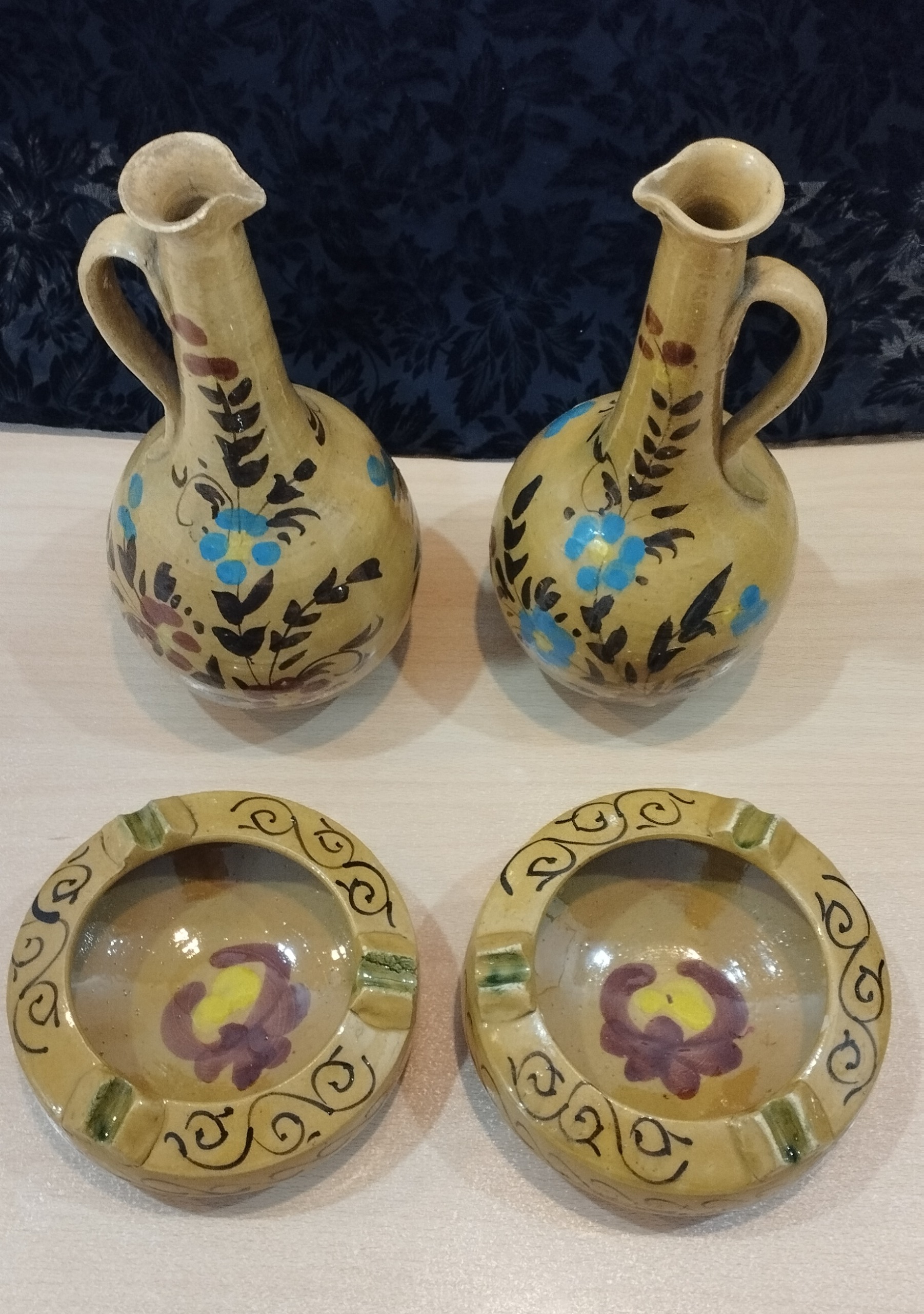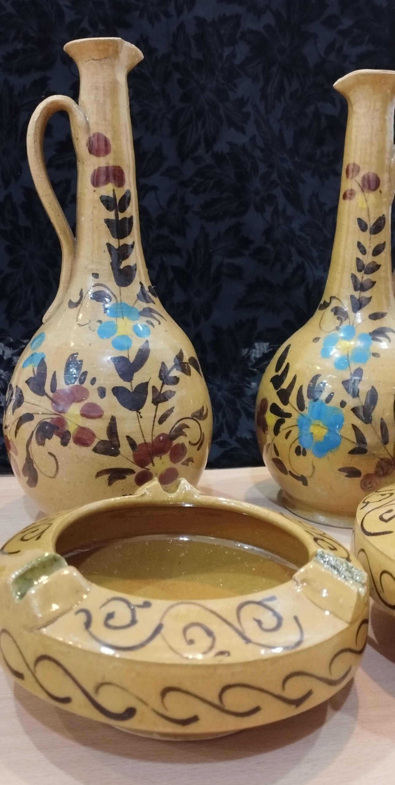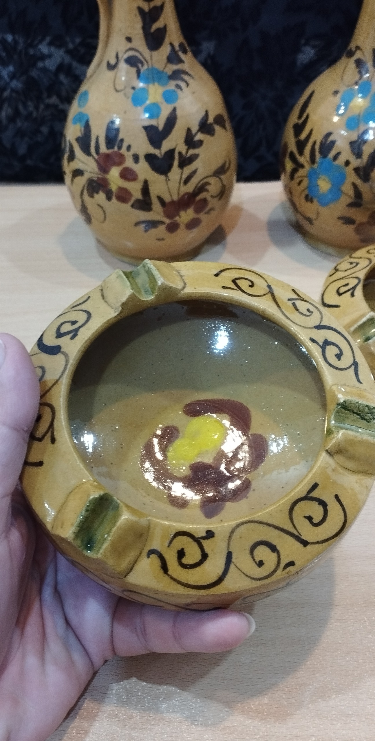 تنگ و زیر سیگاری سفالی دست ساز انتیک عصر پهلوی