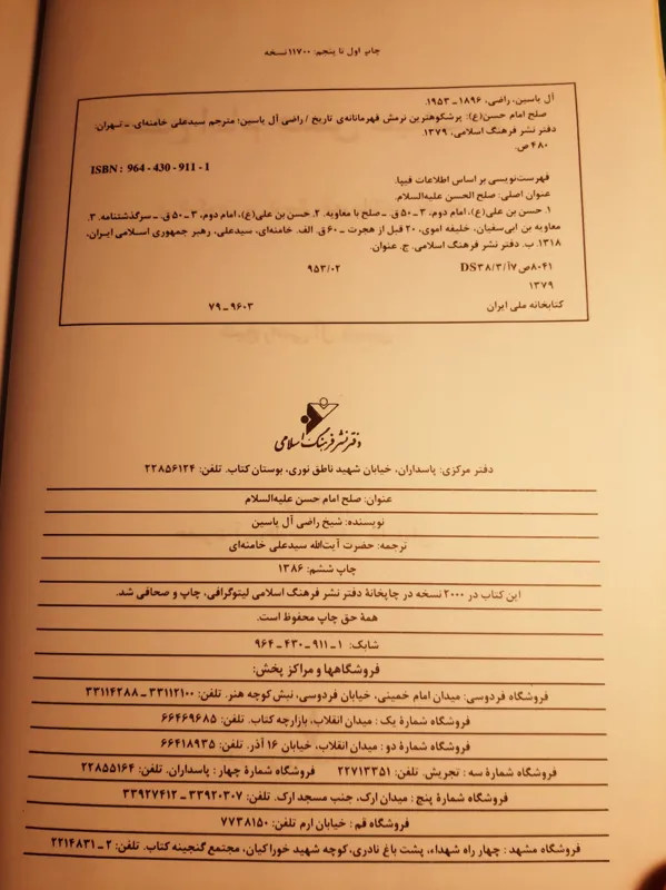 محسوب میشود. ویژگیهای مهم کتاب: مؤلف: آیت الله شیخ راضی آل یاسین، عالم و محقق برجسته شیعه اهل عراق ترجمه فارسی: توسط حضرت آیت الله سید علی خامنه ای در سال 1348 شمسی ناشر: مؤسسه پژوهشی فرهنگی انقلاب اسلامی موضوع: بررسی زندگی امام حسن (ع)، زمینه ها و عوامل صلح
