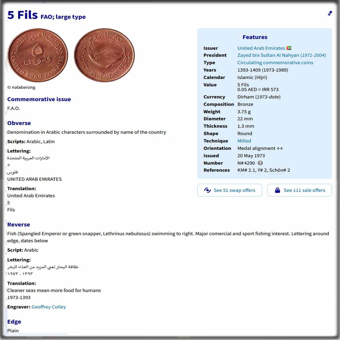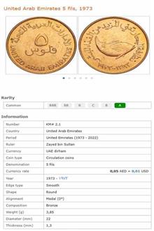 سکه 5 فلوس امارات 1393-1973 (مدل بزرگ) کمیاب