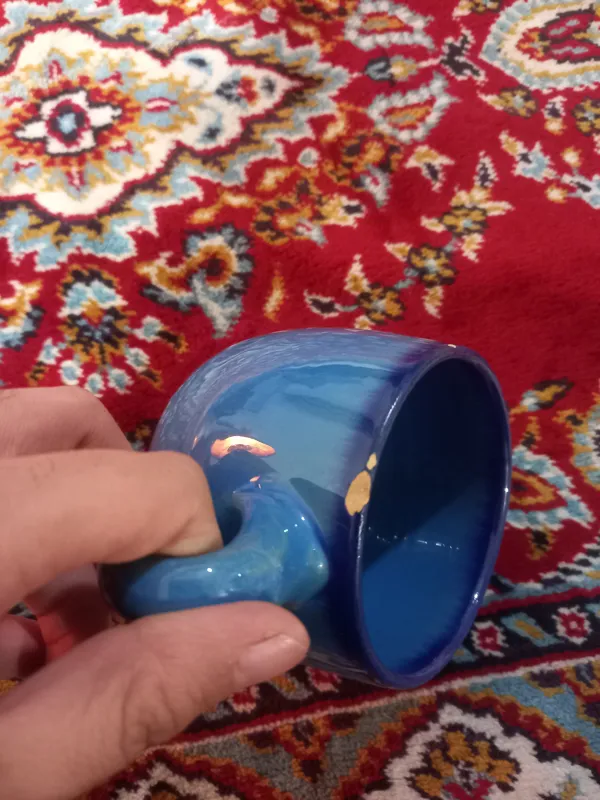 لیوان سفالی رنگ ابی قدیمی