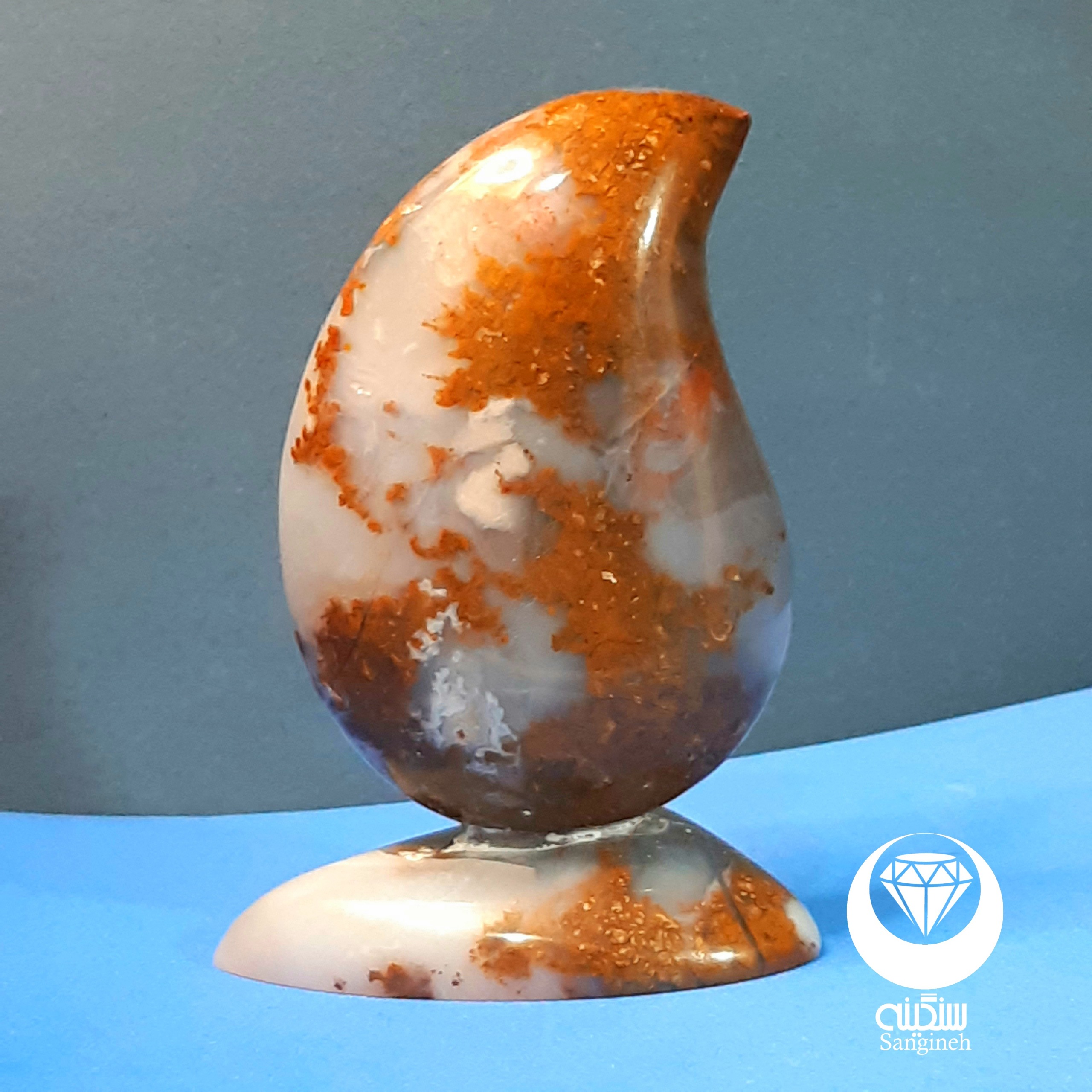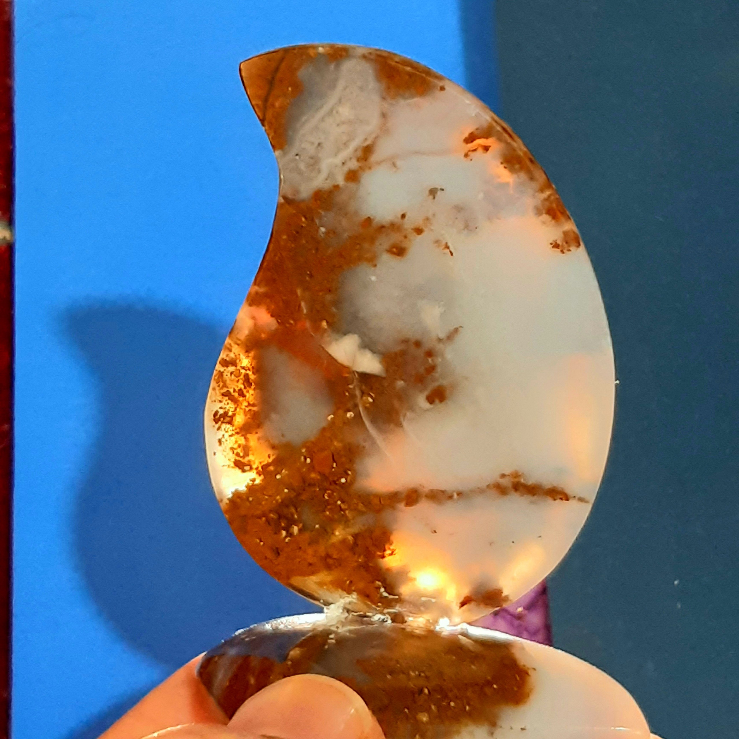 + این سنگ زیبا عقیق منظره به صورت بته جقه تراش خورد .