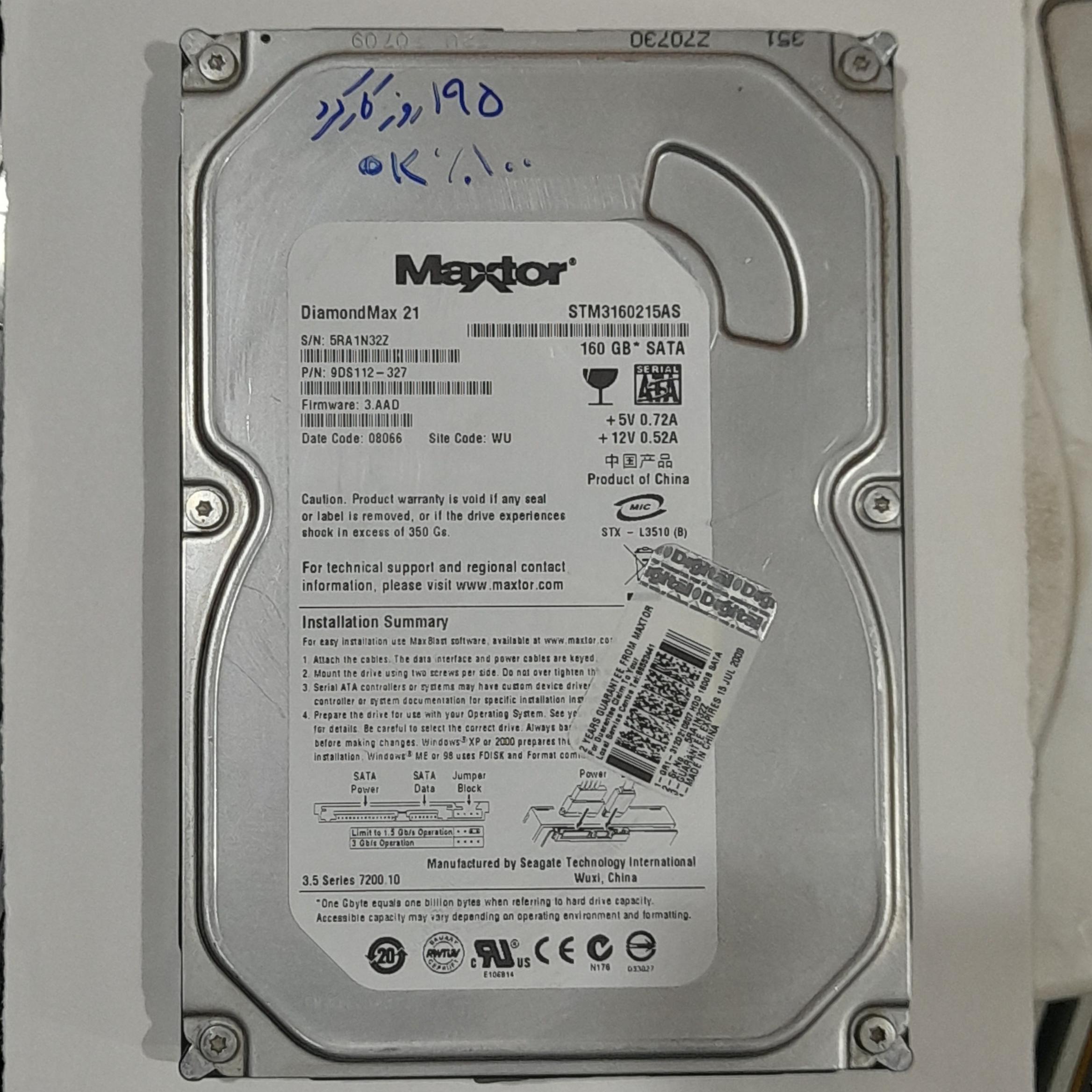 هارد 160 گیگ Maxtor SATA کم کار کد 371