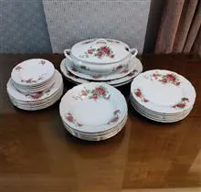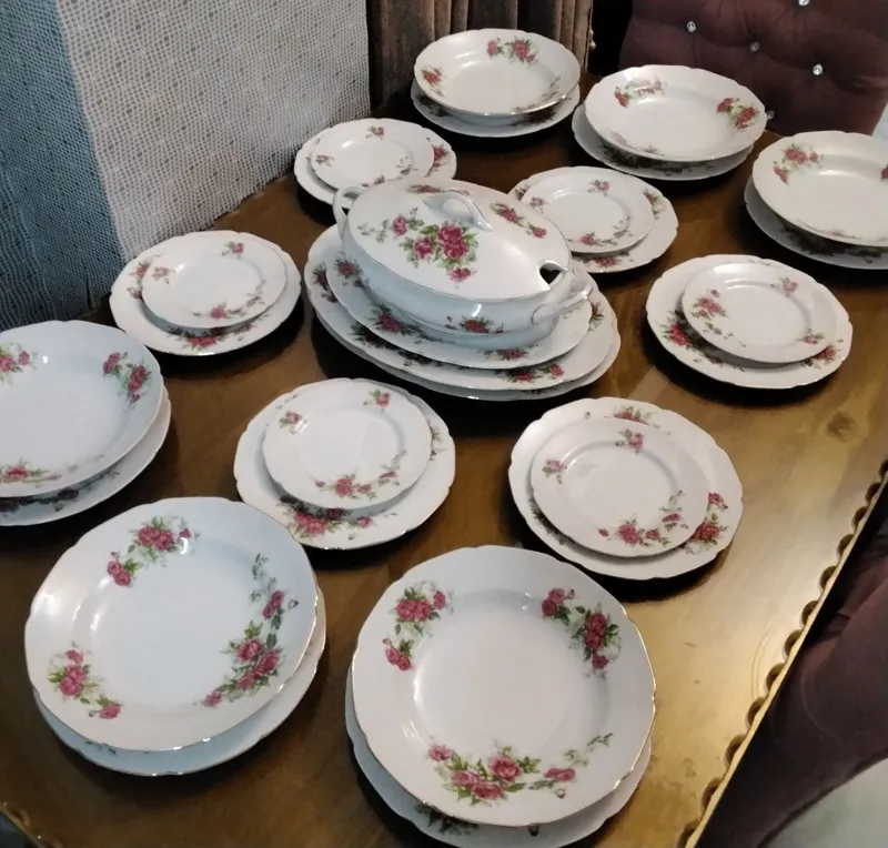 سرویس غذاخوری زیبا و آنتیک گلسرخی چینی درباری بازرگانی مسعود kpm شامل: