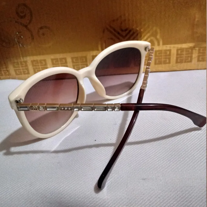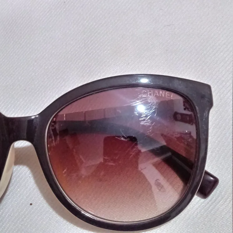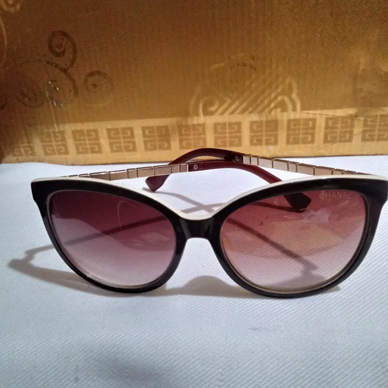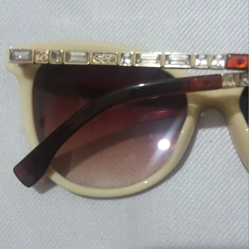 عینک آفتابی زنانه مارک channel با دسته نگین دار .کارکرده تمیز.دقت داشته باشید عینک کارکرده میباشد و اگر خش کوچکی هم داشت احیانا به علت کارکرده بودنش هست.ظاهر بسیار زیبا دو رنگ دو سمت عینک بانگین های زیبای روی دسته عینک و مارک معتبر و کیفیت یووی 400 و استاندارد های دیگه.....در روزهای آفتابی و مخصوصا مواقعی که برف باریده و هوا آفتابی هست و چشم اذیت میشه اشیاء رو با رنگ واقعی و بهتر نشان میدهد.هر 5 تصویر را ببینید