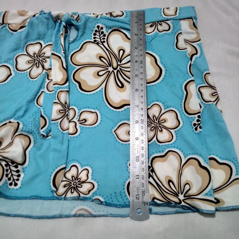 قد دامن که حدود 30 سانتیمتر هست و کمر دامن 38 هست که کمی هم حالت کشی داره ...طرح و رنگ طبق تصاویر با بند از پهلو بسته میشود