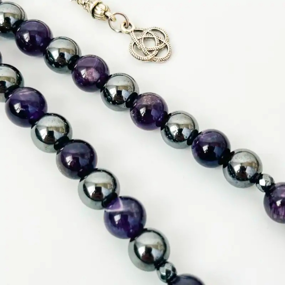 احساس آرامش و رها شدن از تنش: آمیتیست را معمولاً به کاهش استرس، آرامکردن ذهن و ایجاد حس مهربانی با خود نسبت میدهند. این تسبیح در لحظههای فشردهٔ روز میتواند بهت یک مکث امن بدهد.