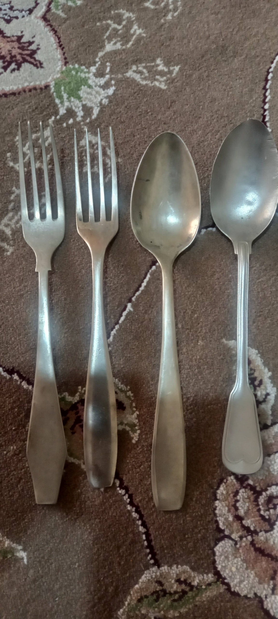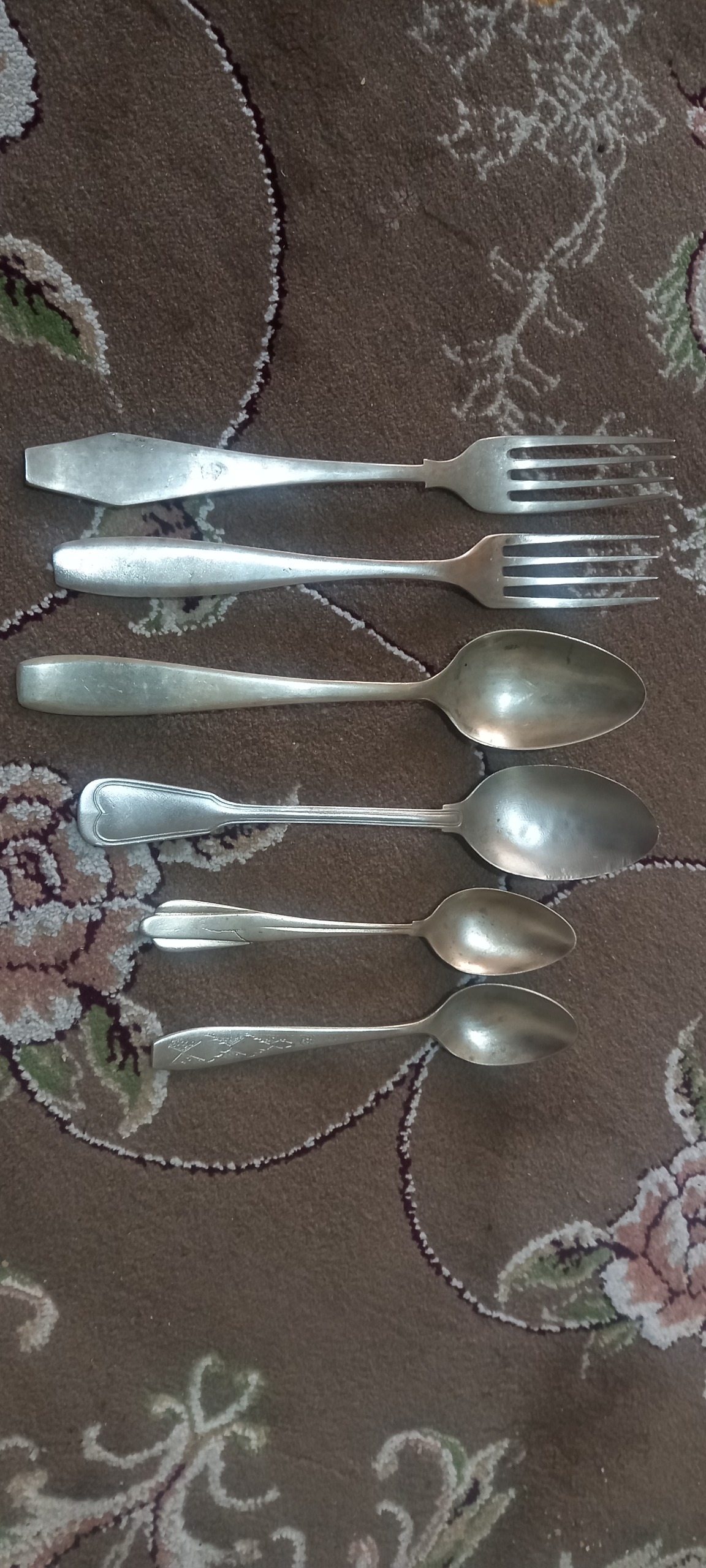 طبق تصویر تعداد 6عدد قاشق و چنگال ورشو که یه دونش میخوره نقره باشه قاشقی که طرح قلب داره