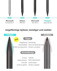 قلم متاپن M1 برای سرفیس، سطح فشار 1024، شارژ USB-C (عمر باتری 300 ساعت)، آهنرباهای دوتایی داخلی، قلم تبلت با سرفیس پرو X/8/7/6/5/4/3، سرفیس 3، سرفیس Duo/سرفیس Duo 2