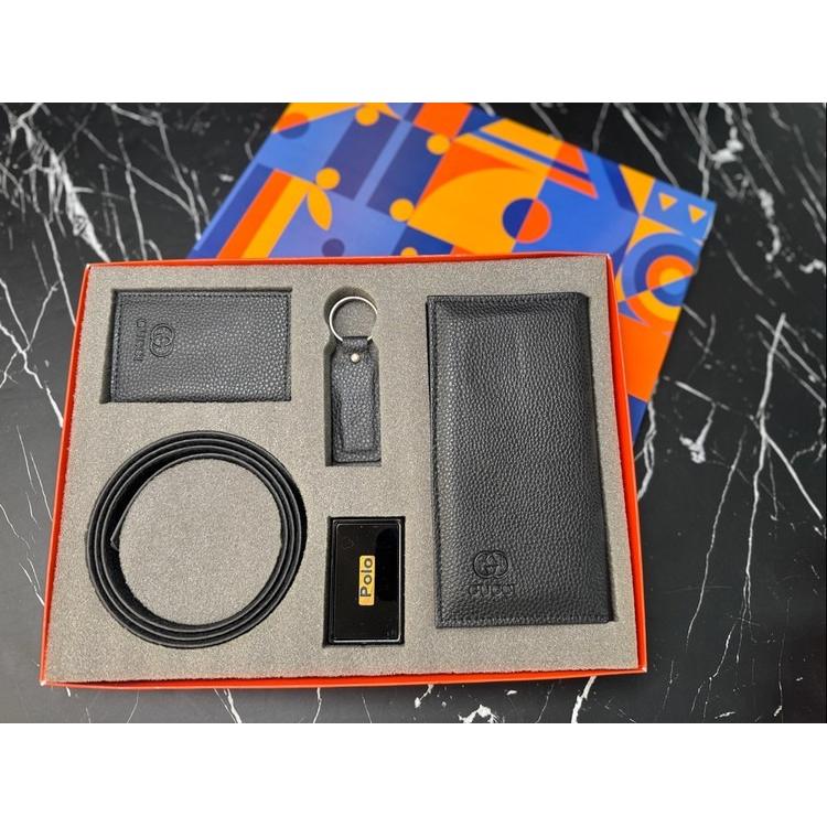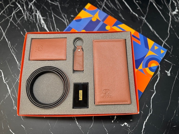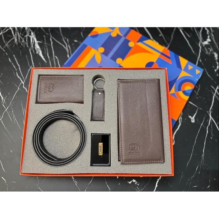 ست مردانه چرم بز دارای کیف پول و کمربند و جا کارتی و جا سوئیچی