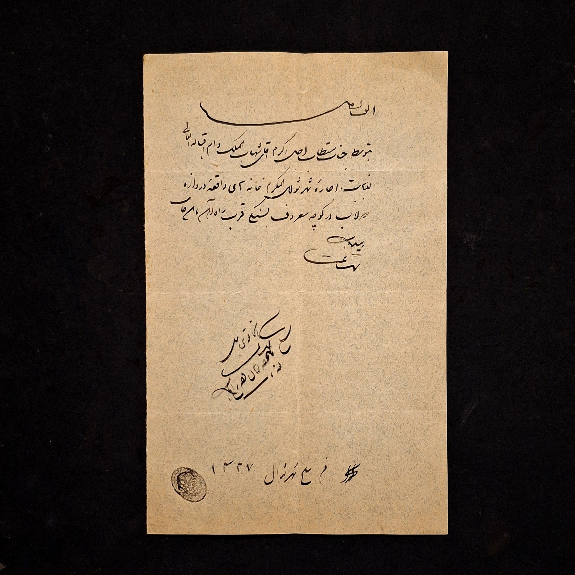 یک ورق با یک مهر قاجاری - کلکسیونی