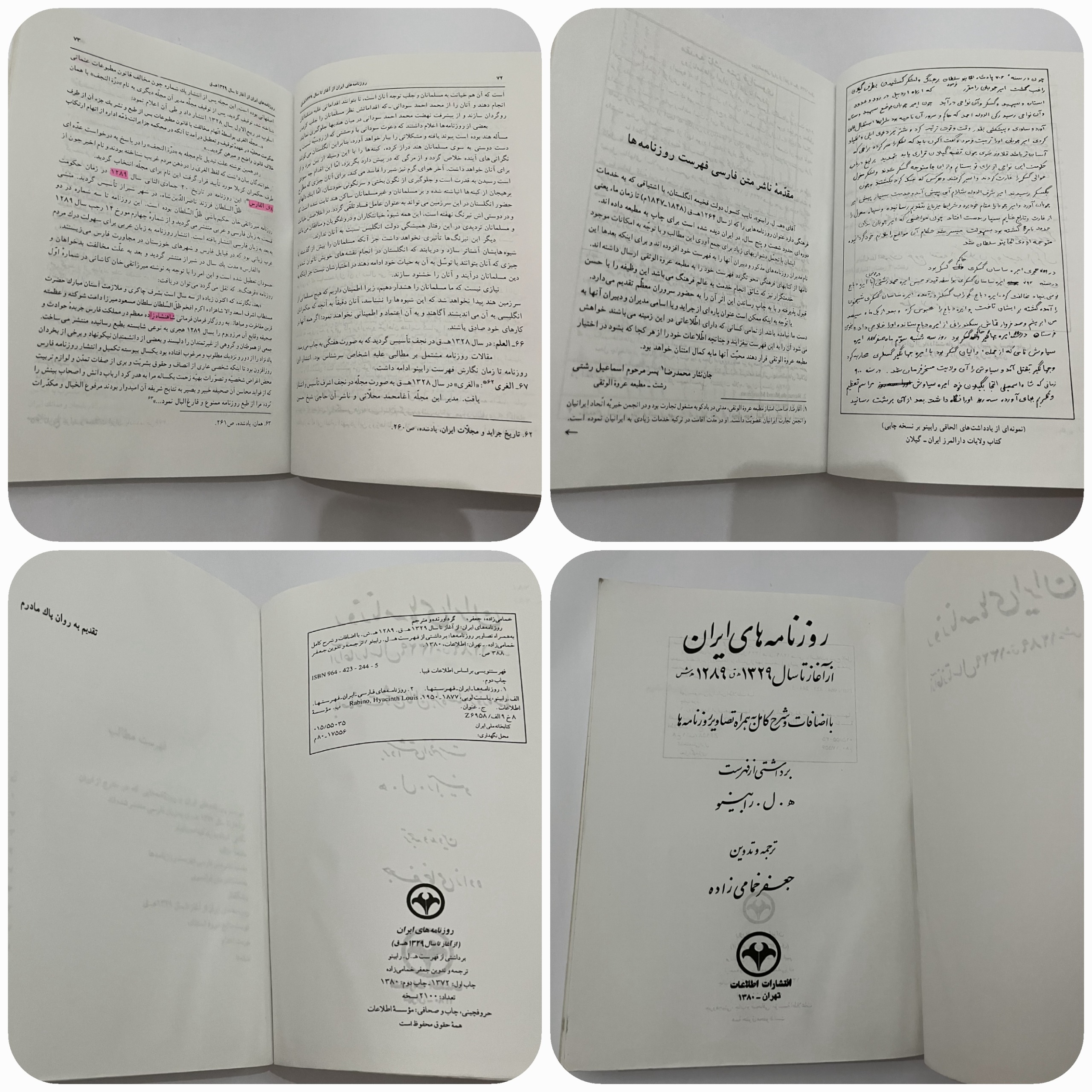 کتاب تاریخ روزنامه های ایران از آغاز تا قاجار (سال 1289هجری شمسی)، به همراه تصاویر و آرشیو روزنامه های ایران با برداشتی از فهرست (ه ل رابینو) و با ترجمه و تدوین جعفر خمامی زاده در انتشارات اطلاعات سال 1380.